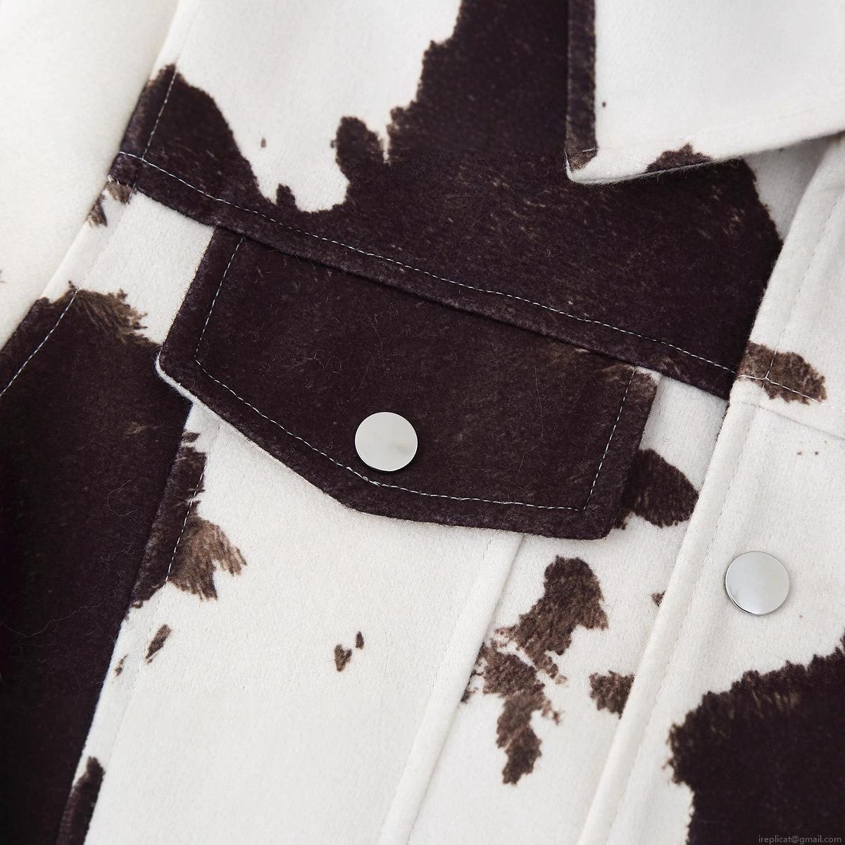 Women's Cow Print Jacket Faux Fur Suede Vintage Turn-down Collar Button Coat Loose Long Sleeve Streetwear Outerwear With Pocket Autumn Winter Fashion Jacket