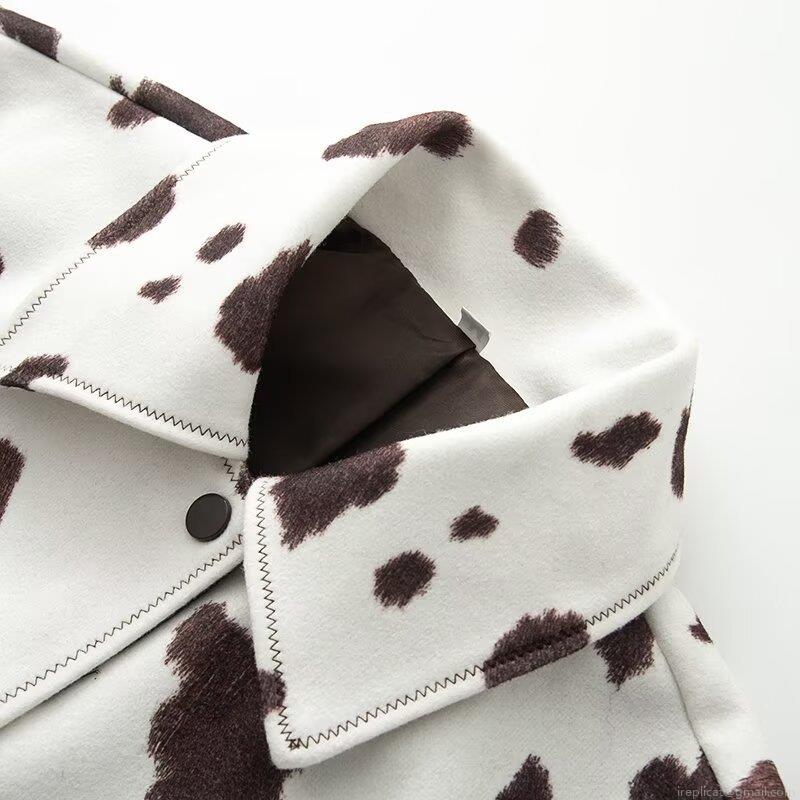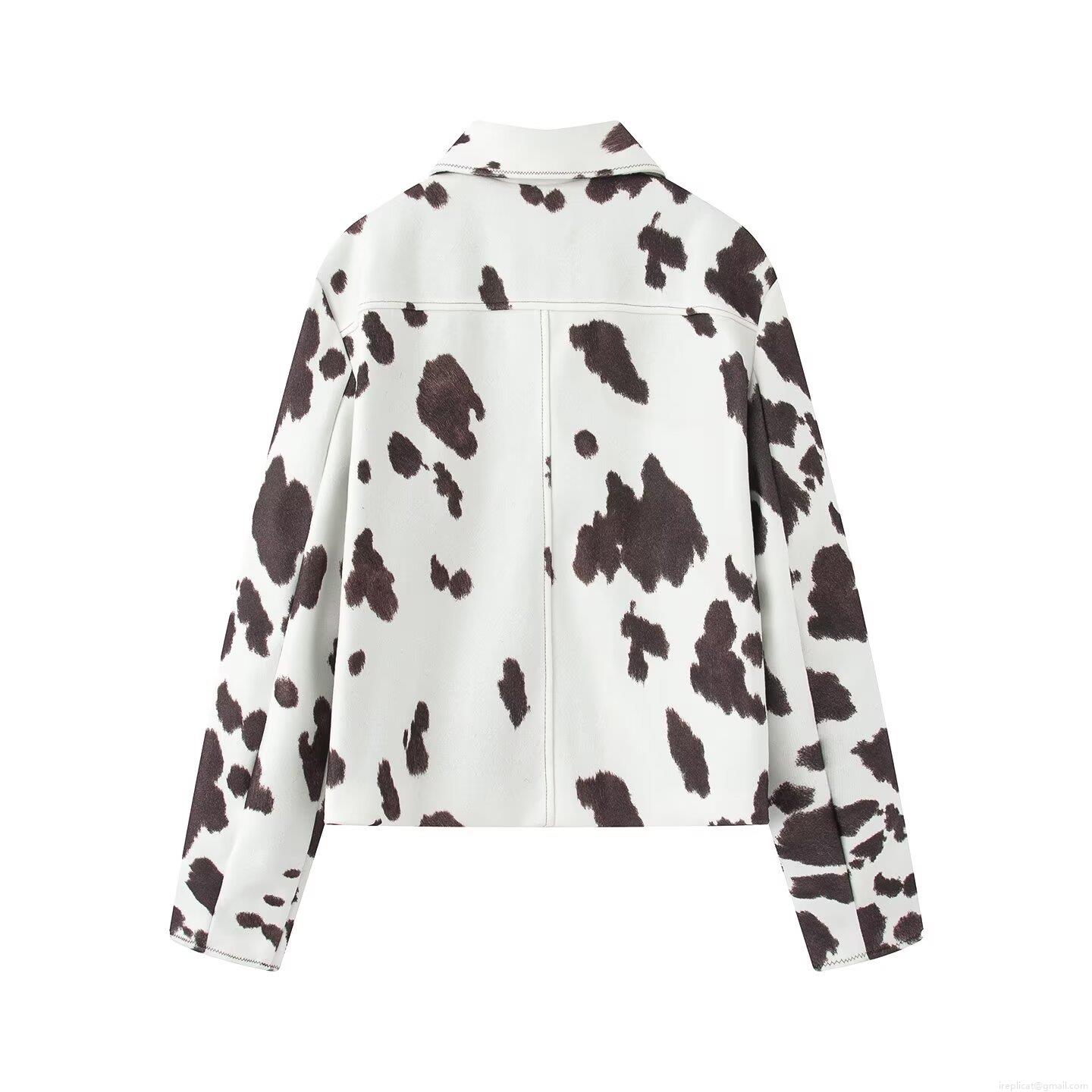 • Women's Cow Print Short Jacket Vintage Lapel Single Breasted Long Sleeve Baseball Coat Fashion Streetwear Outerwear For Autumn Winter