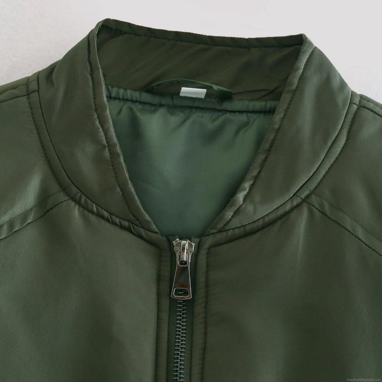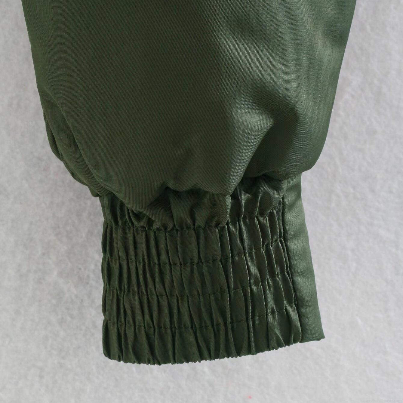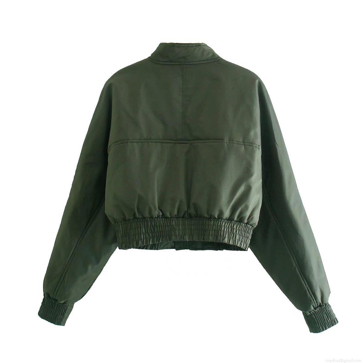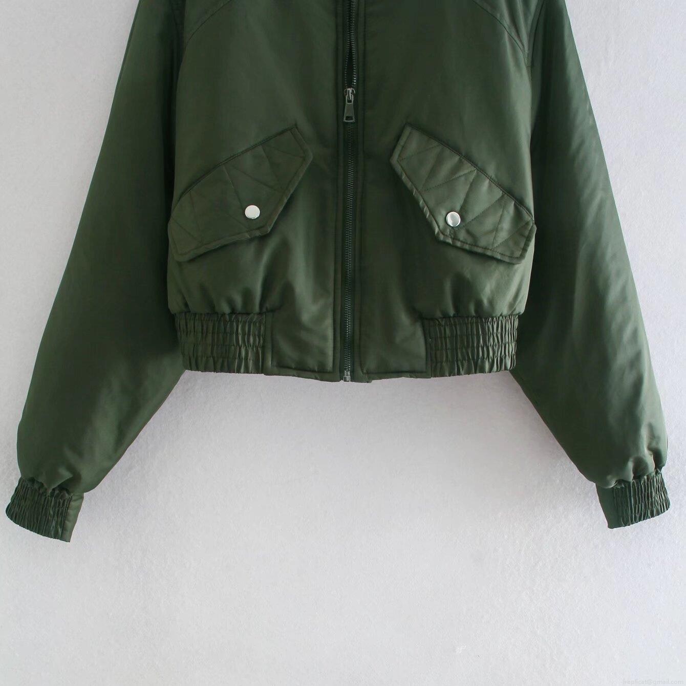 • Women's Cropped Bomber Jacket Solid Color Stand Collar Zipper Casual Windproof Padded Coat With Ribbed Cuffs And Pockets For Spring Autumn Winter