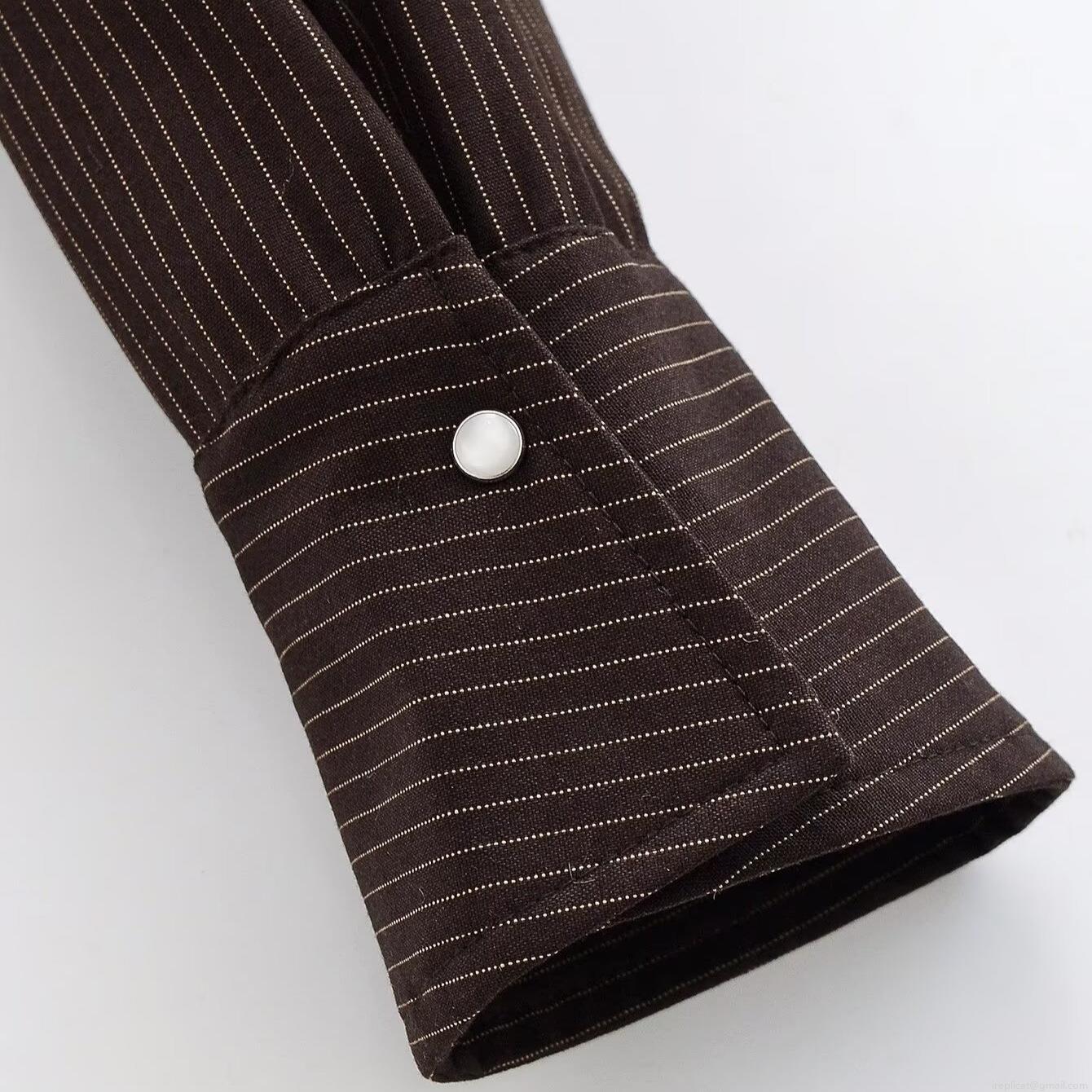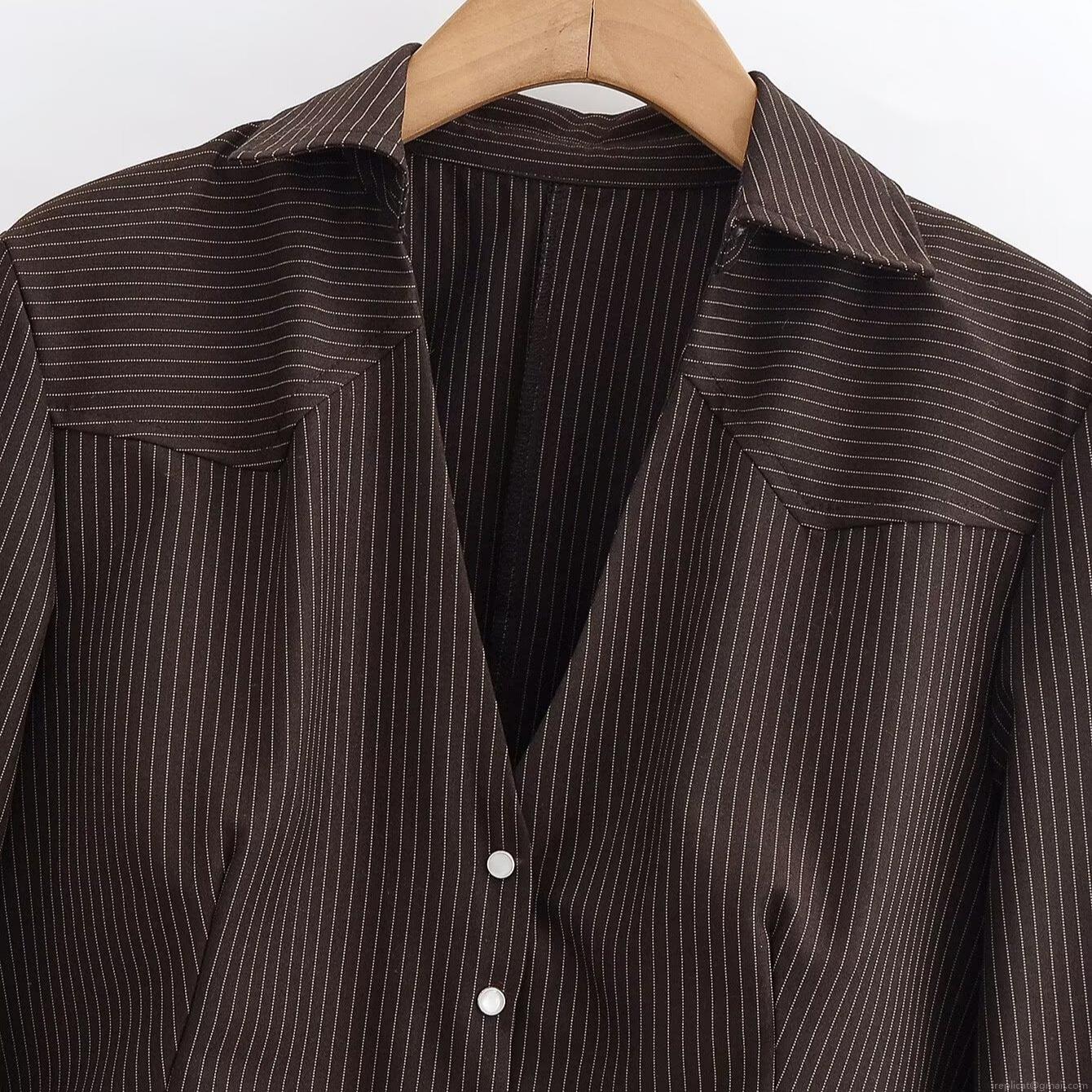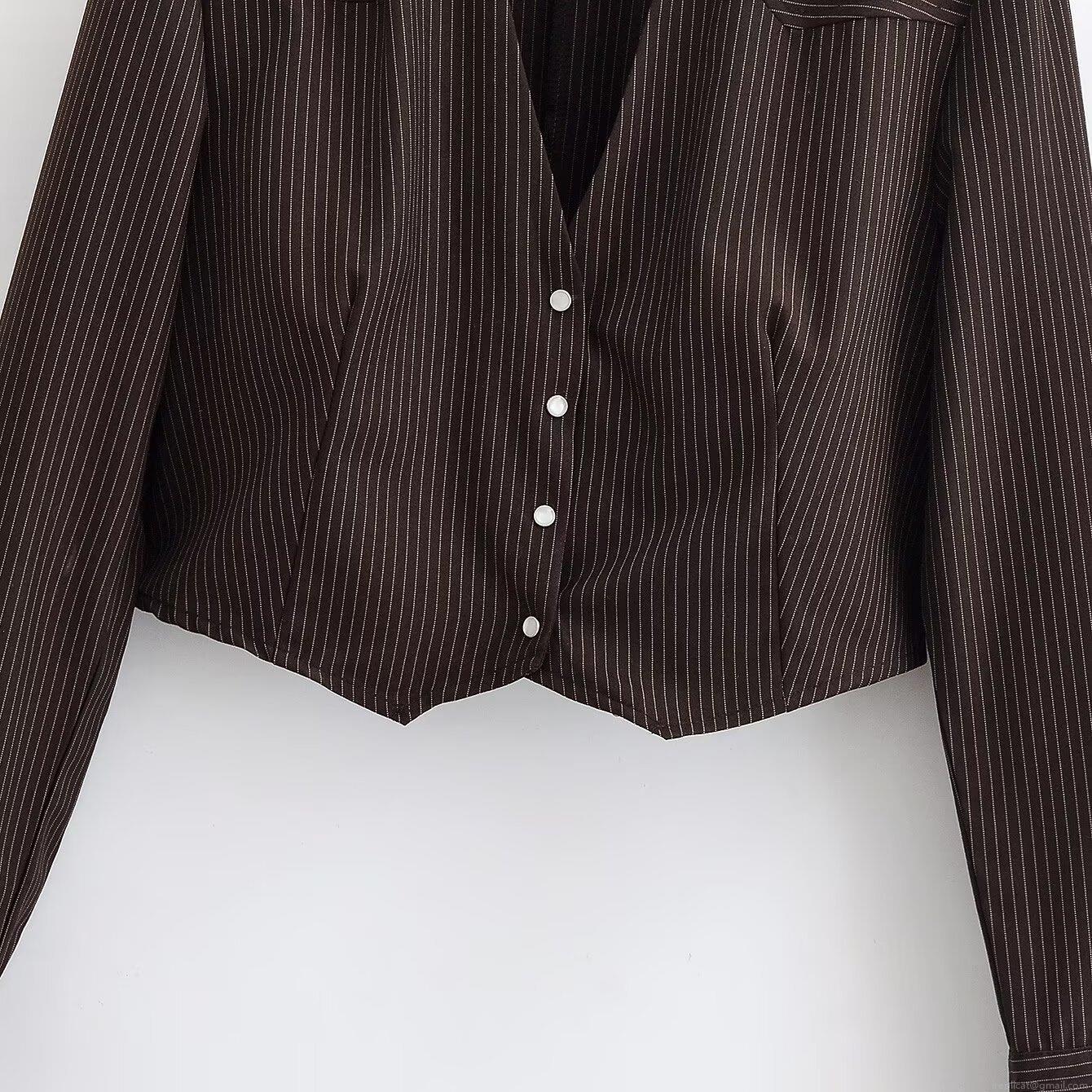 • Women's Cropped Striped Shirt Jacket Fashion Long Sleeve Lapel Button Down Blouse Vintage Casual Short Coat For Women Autumn Winter Office Wear