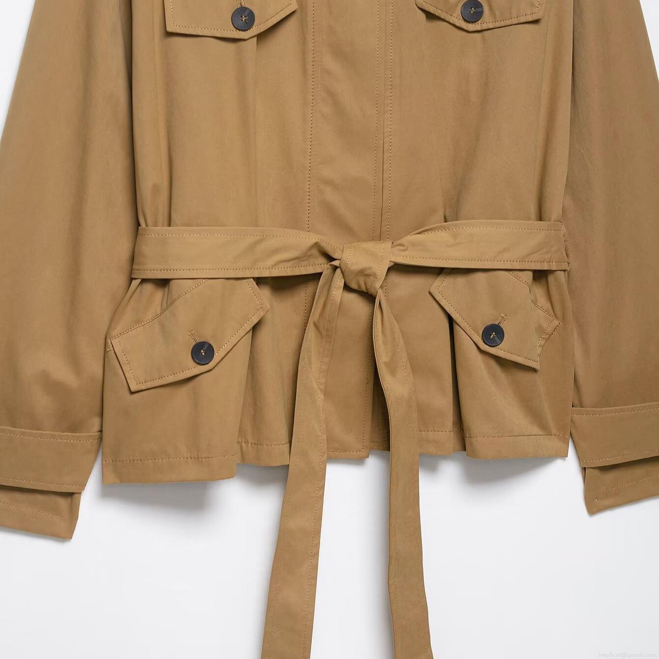 • Women's Cropped Trench Coat Polyester Cotton Blend Utility Jacket With Belt Lapel Long Sleeve Solid Color Outerwear For Daily Office Streetwear