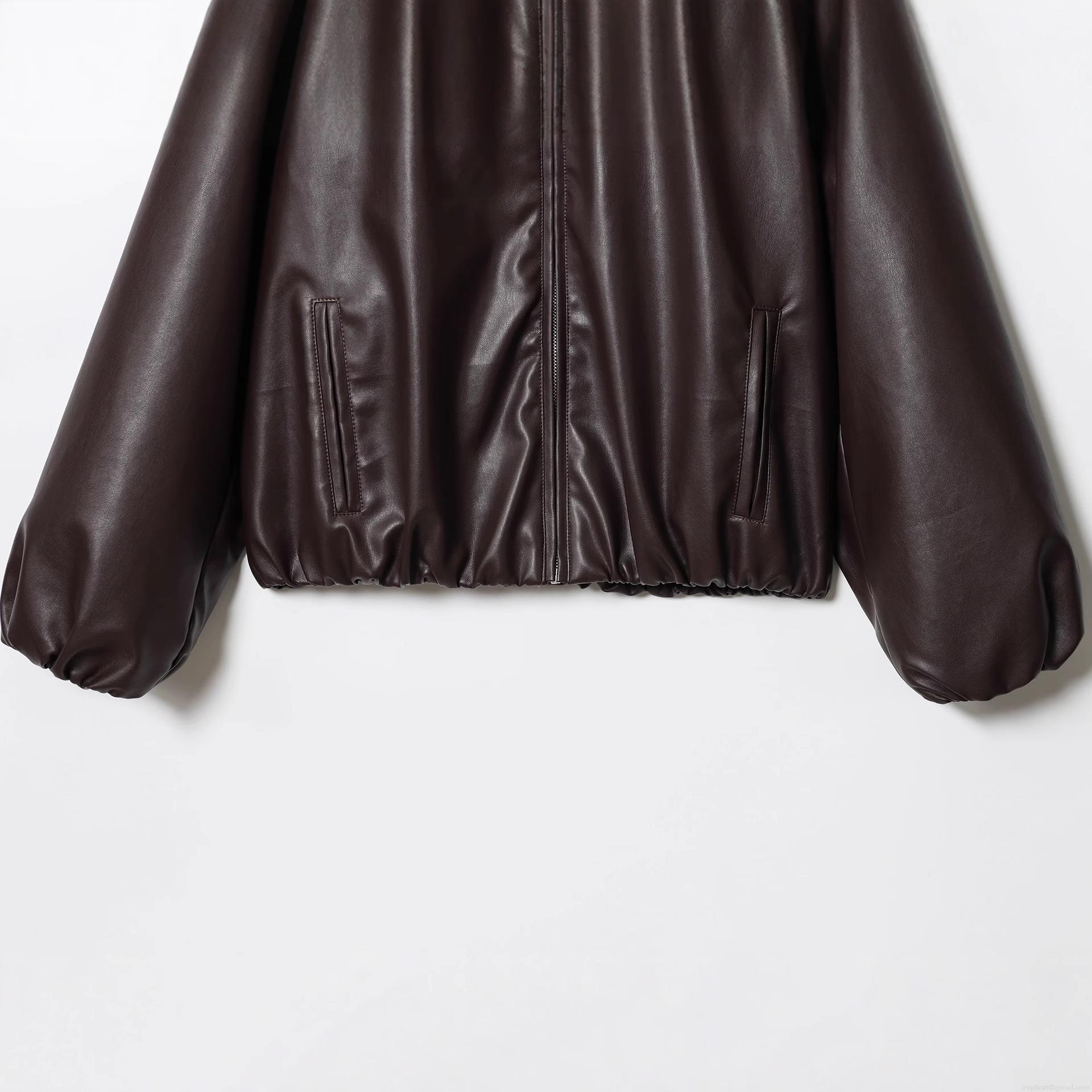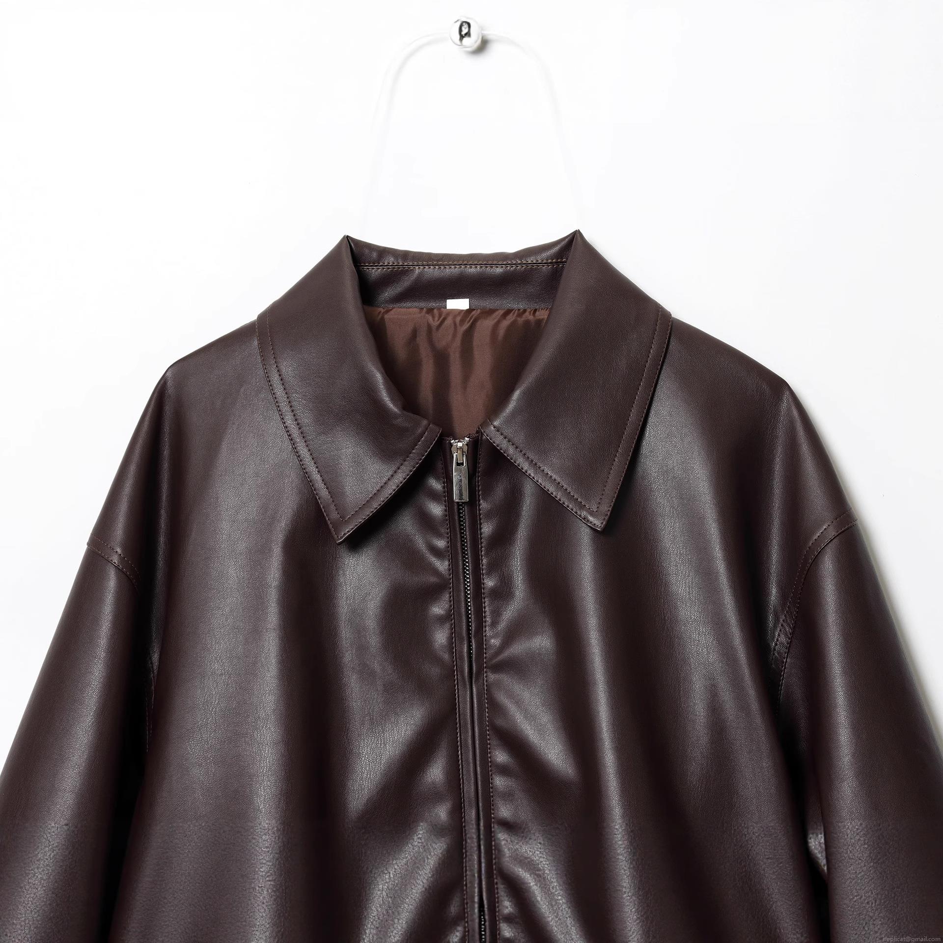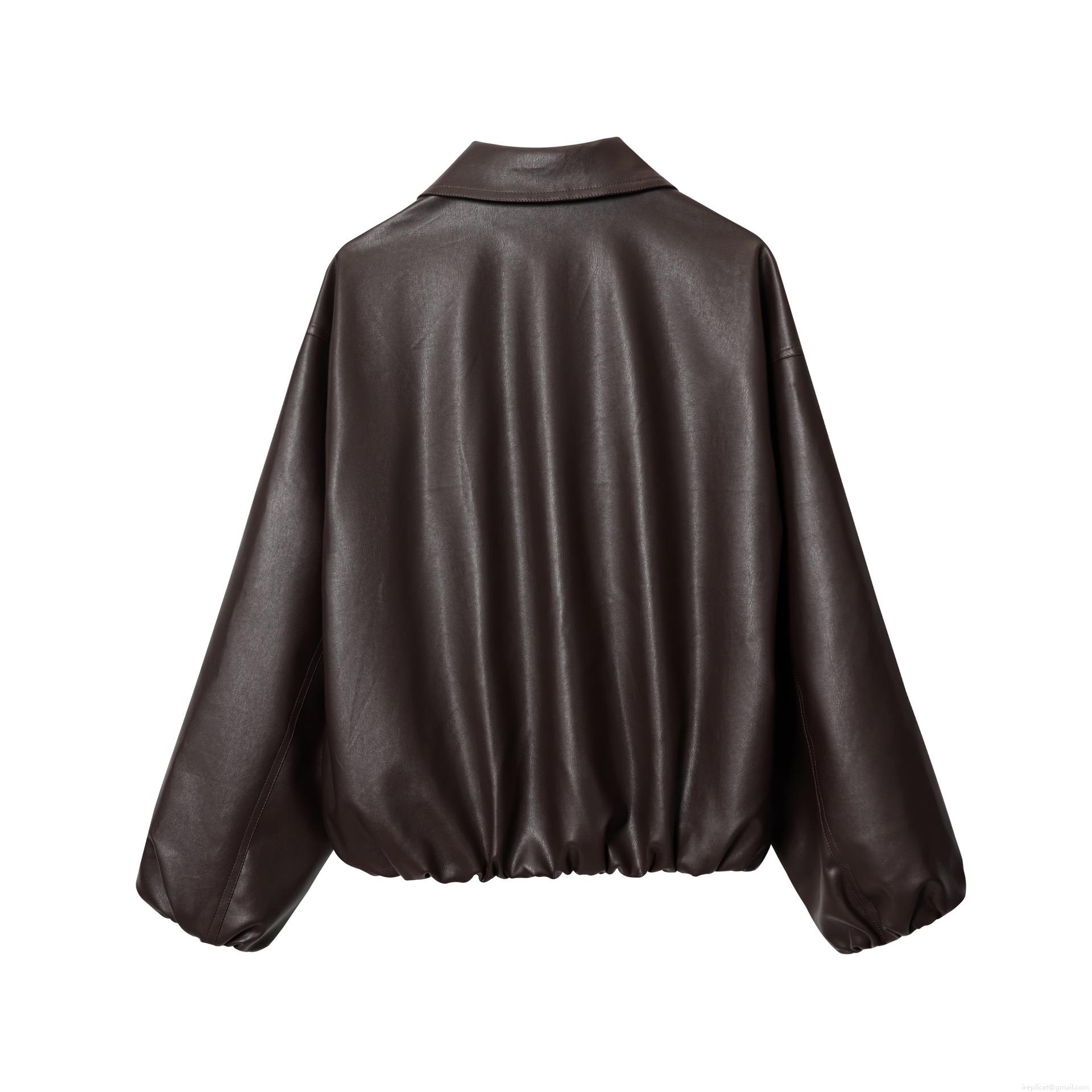 • Women's Dark Brown Faux Leather Bomber Jacket Chic Motorcycle Pilot PU Leather Outwear With Satin Lining Zip Up Short Coat For Women Streetwear