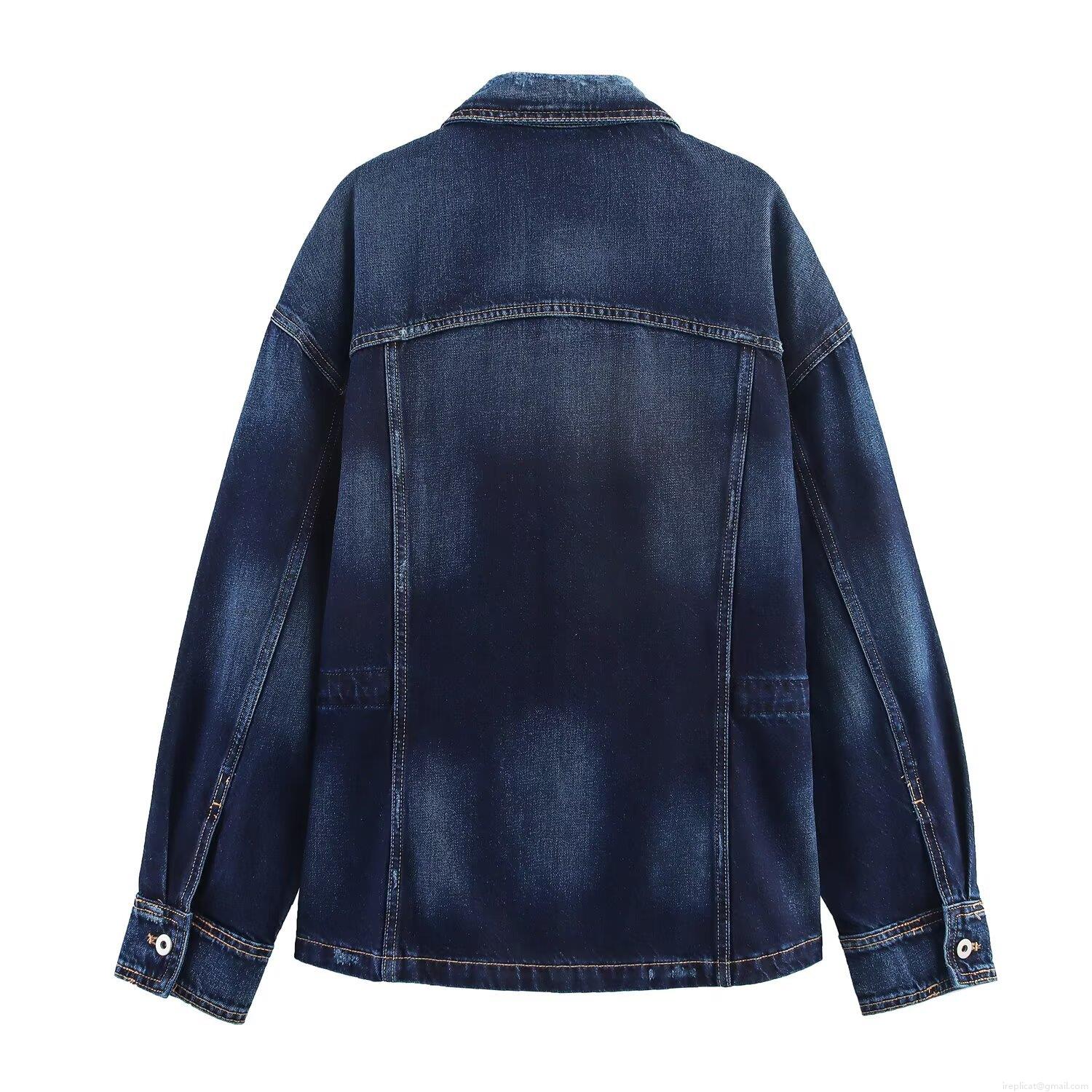 • Women's Denim Jacket Cotton Washed Denim Single Breasted With Pockets Daily Casual Fall Fashion Drop Shoulder Loose Fit Women Classic Vintage Dark Blue Outerwear