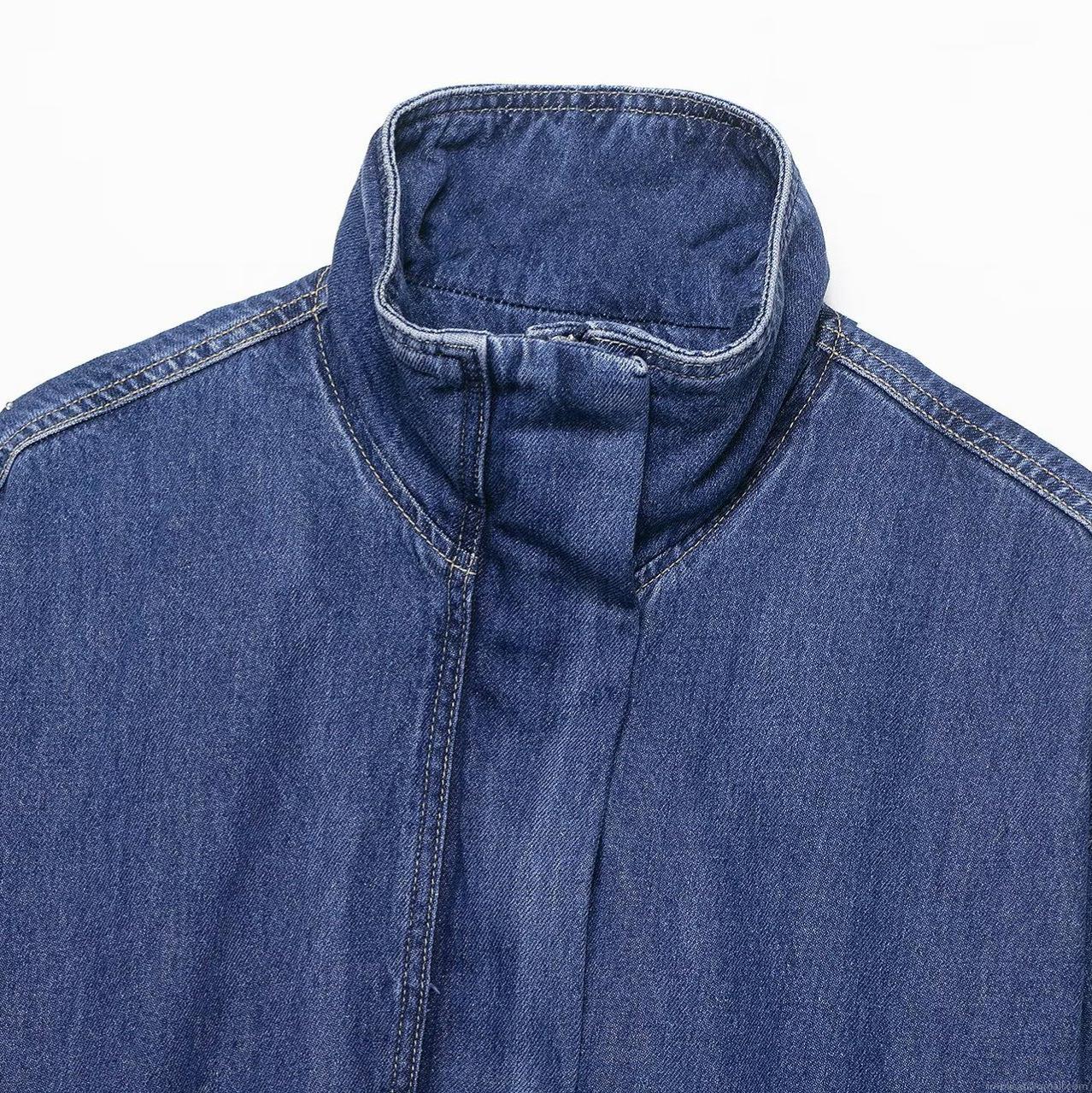• Women's Denim Jacket Fashion Stand Collar Loose Fit Long Sleeve Washed Denim Coat With Zipper Pocket Casual Outerwear For Ladies