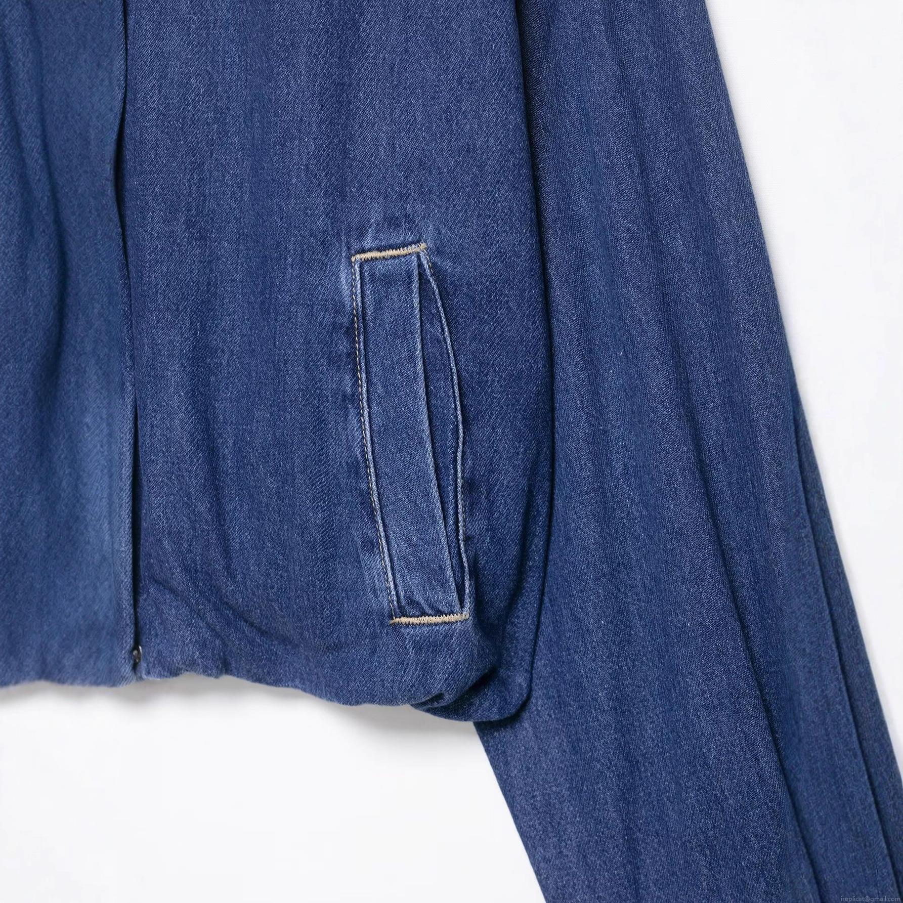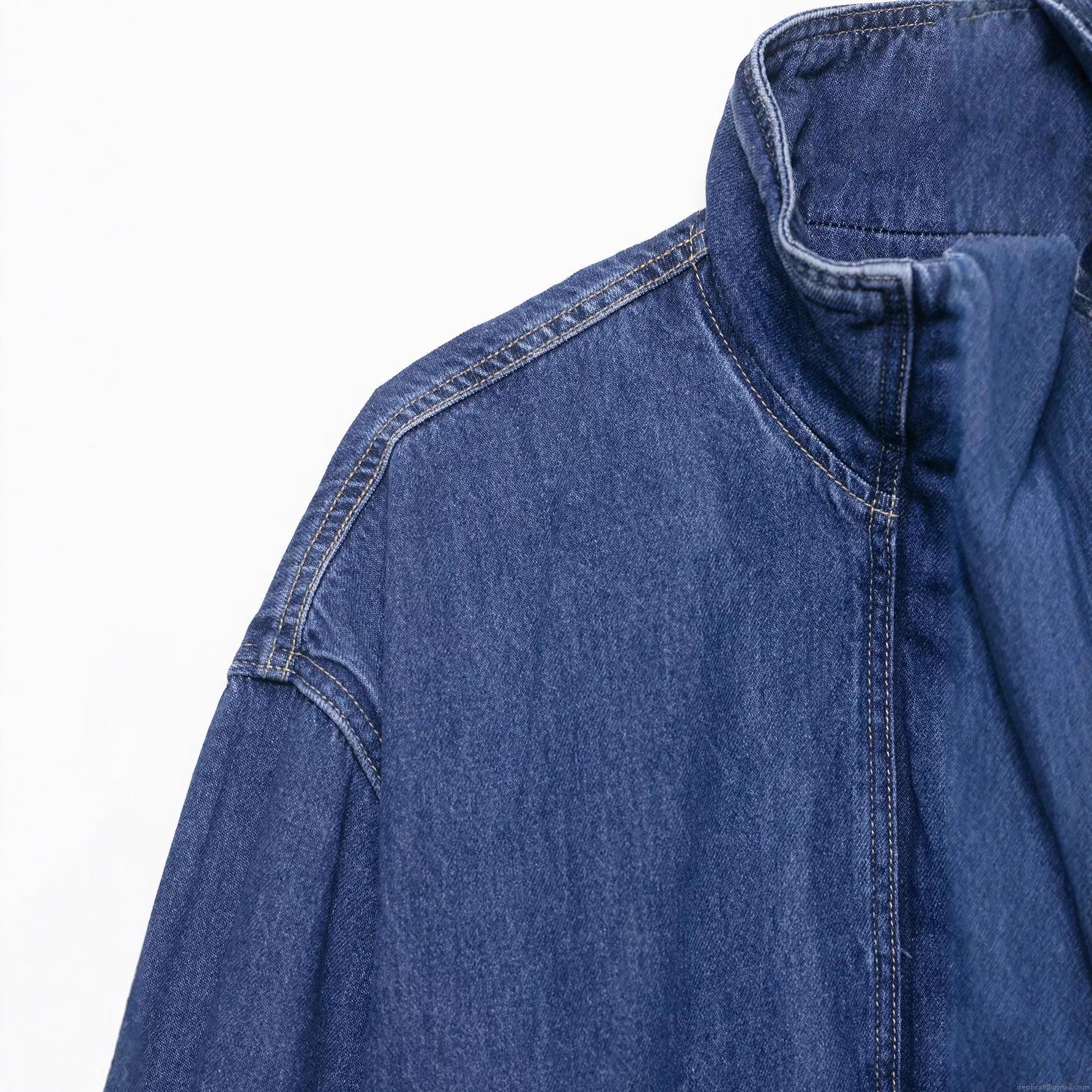 • Women's Denim Jacket Stand Collar Long Sleeve Loose Short Polyester Coat Autumn Royal Blue Streetwear Outwear With Contrast Stitching Pockets