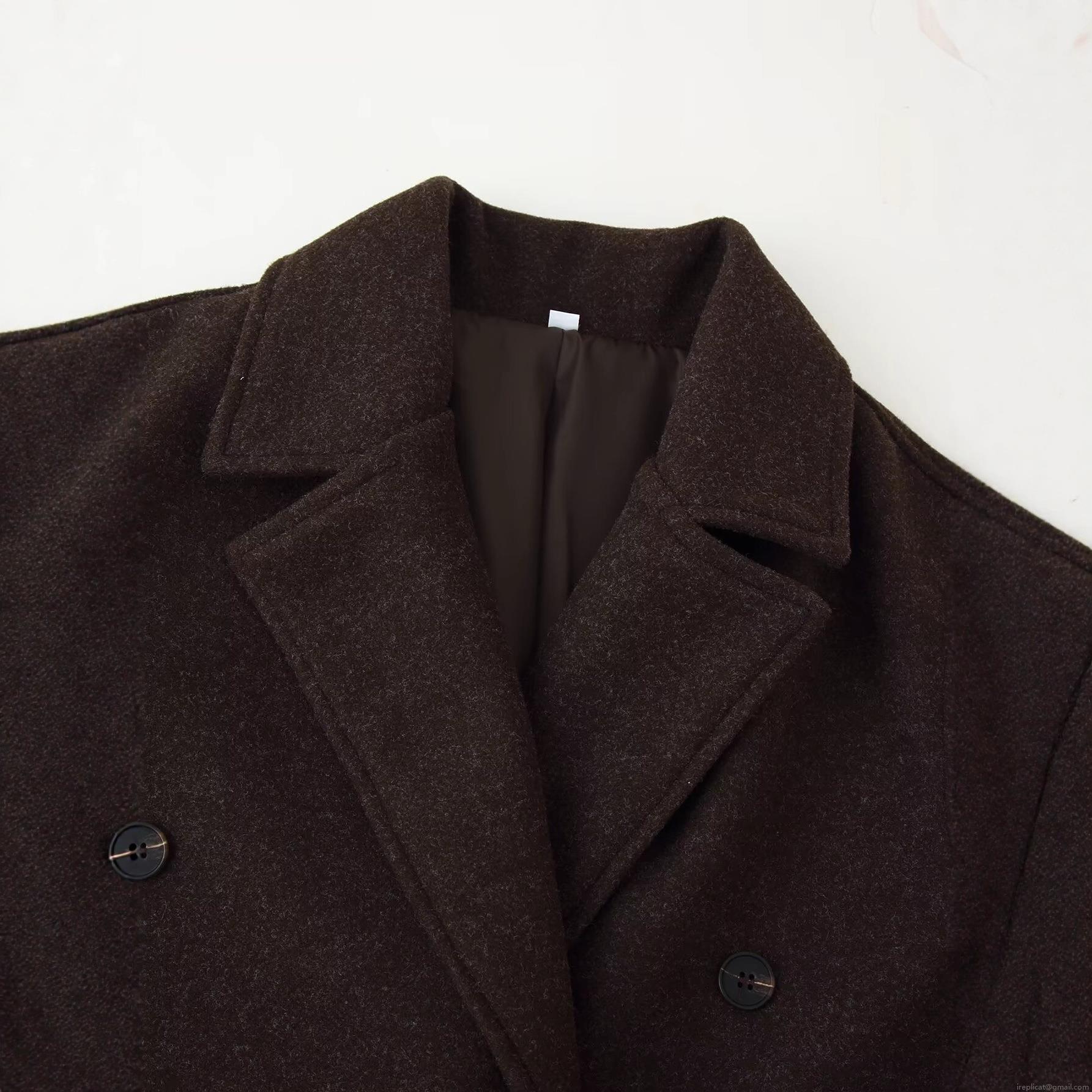 • Women's Double Breasted Long Woolen Coat Notched Lapel Polyester Blend Street Style Autumn Winter Overcoat With Pockets