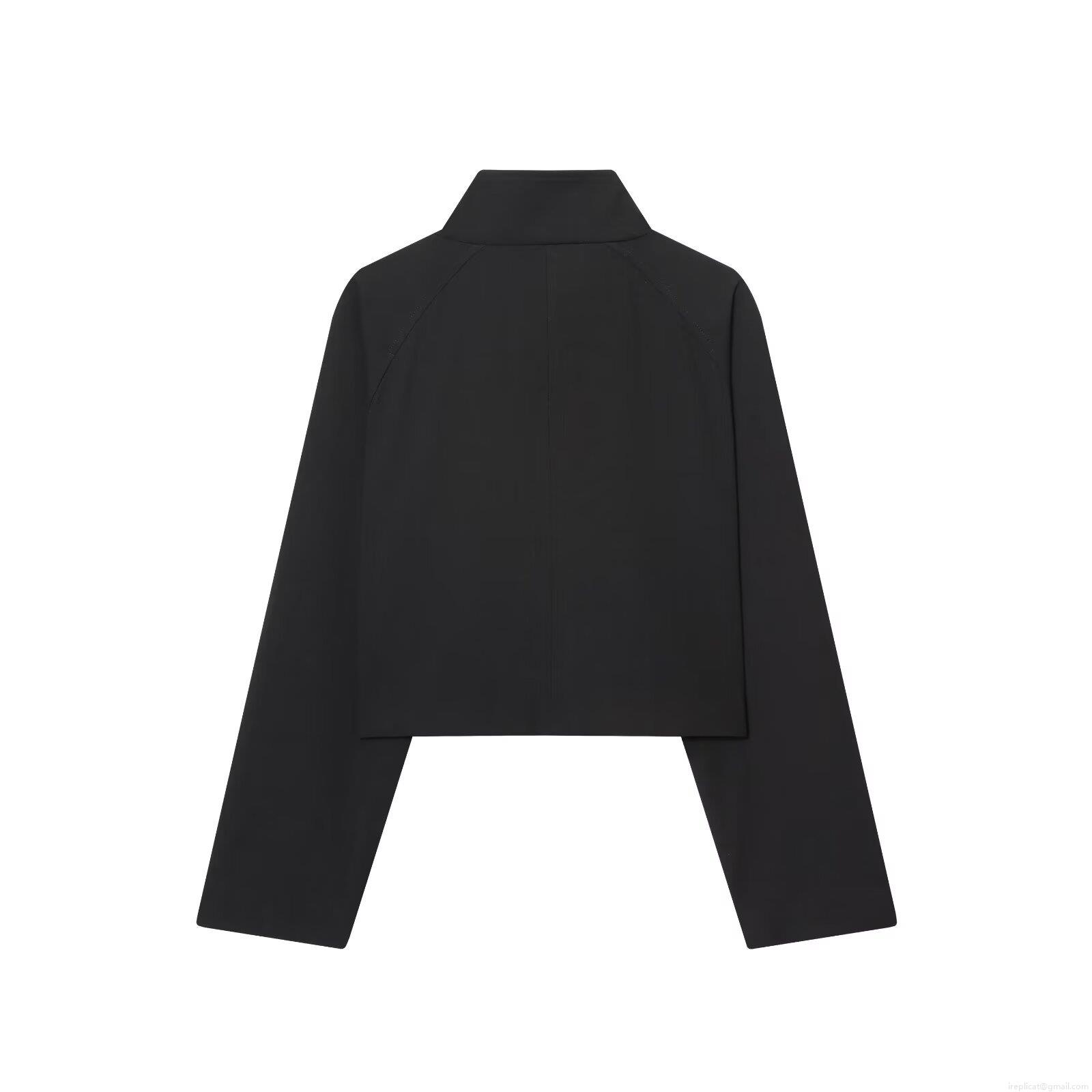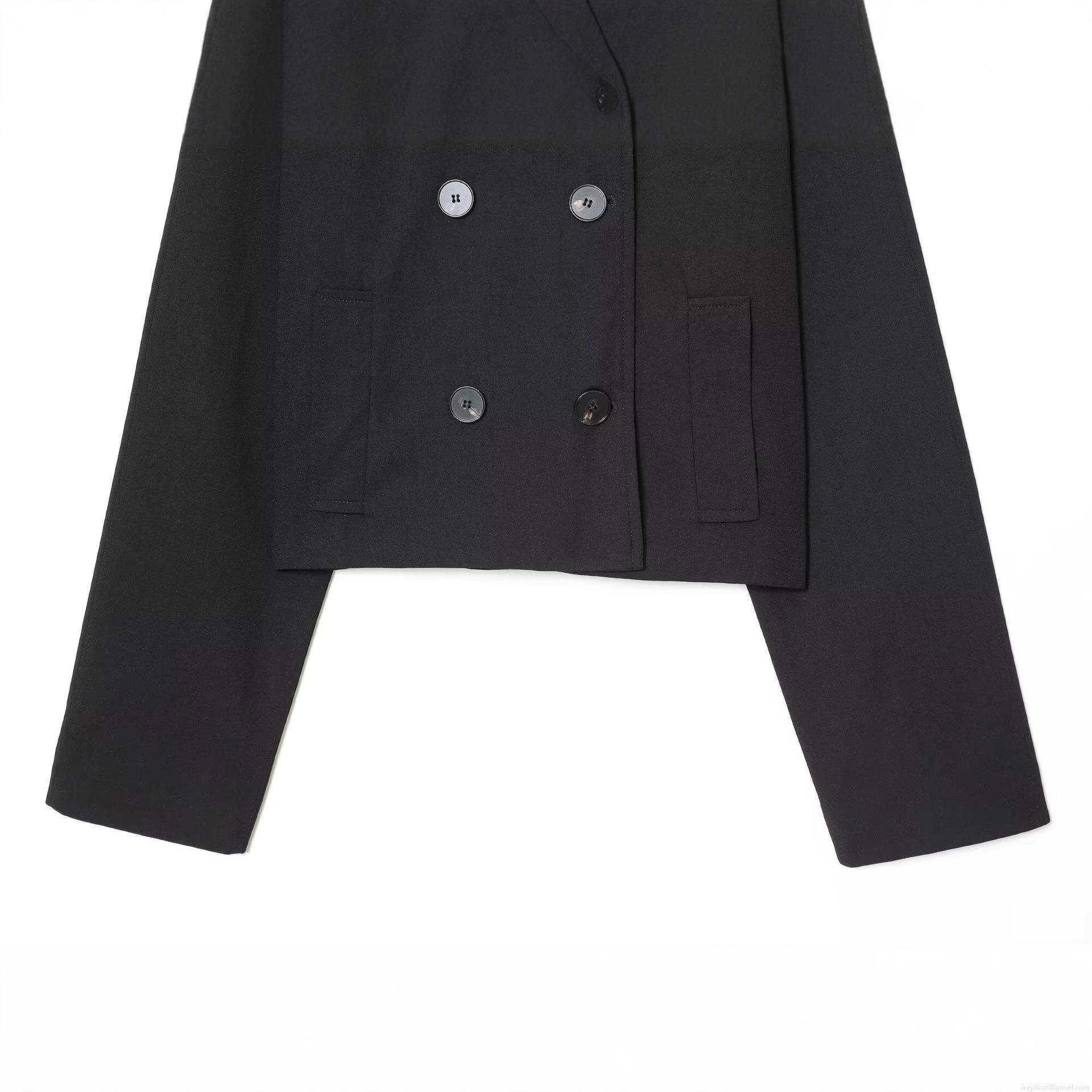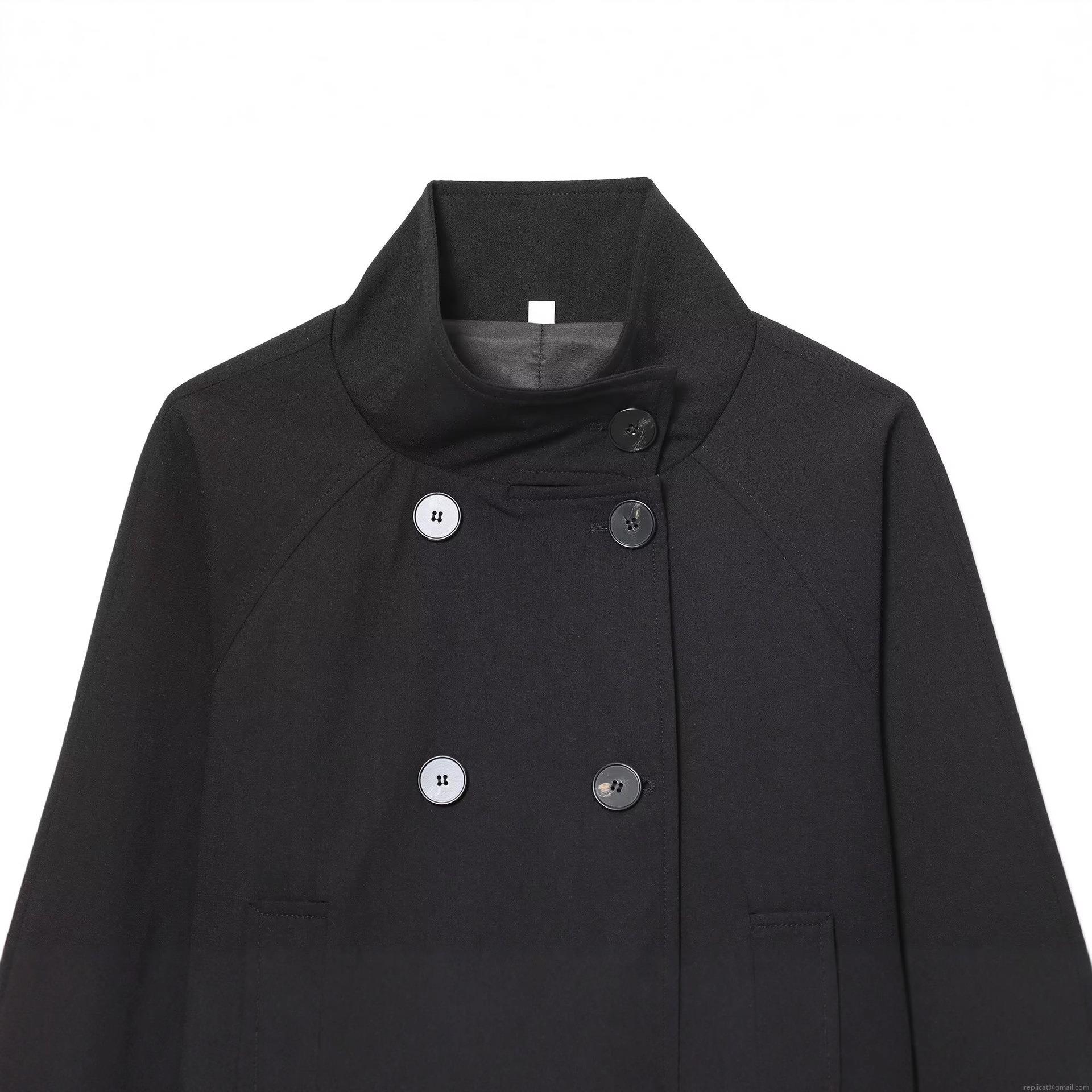 • Women's Double Breasted Short Jacket Stand Collar Long Sleeve Solid Color Casual Fashion Coat Outerwear Polyester Ladies High Street Style