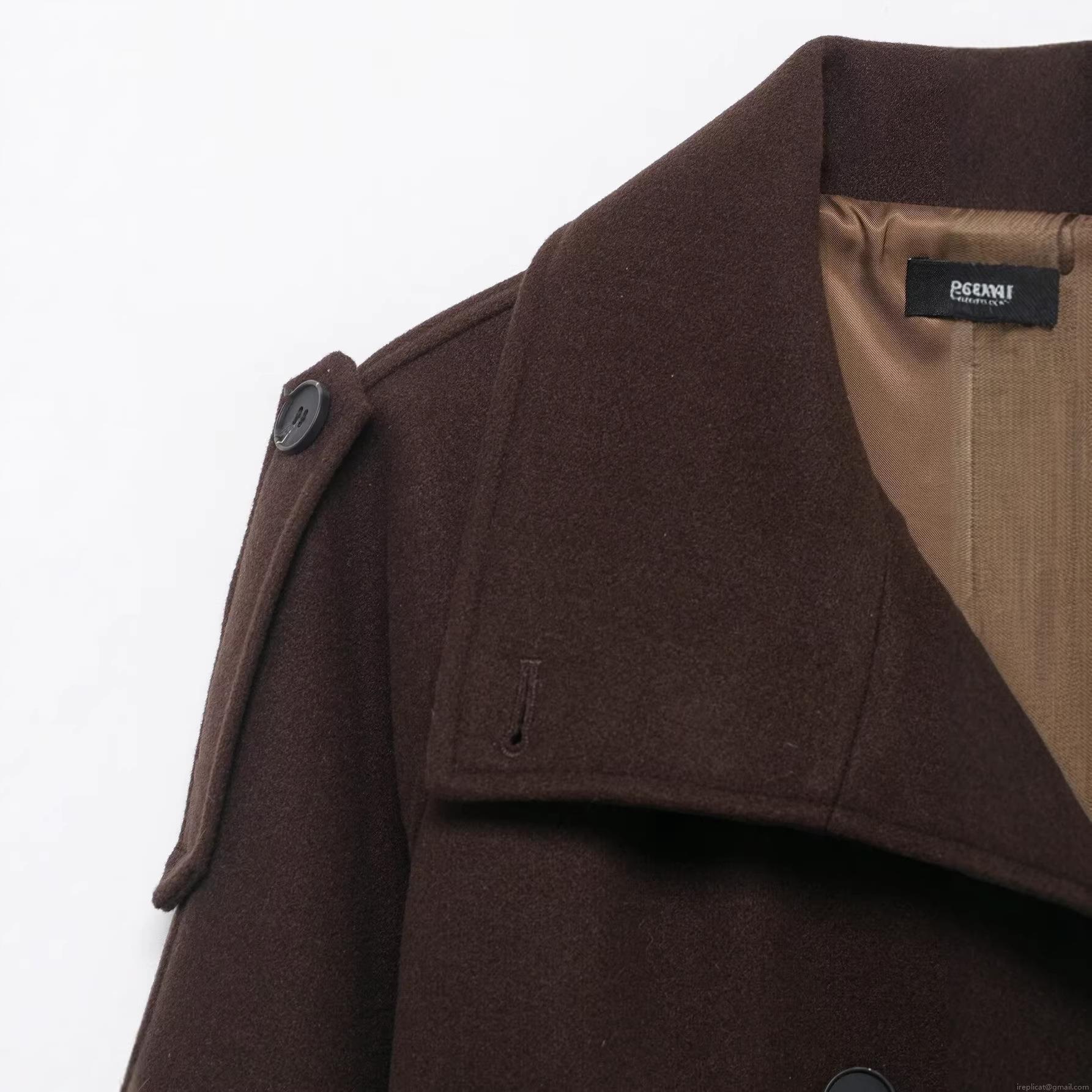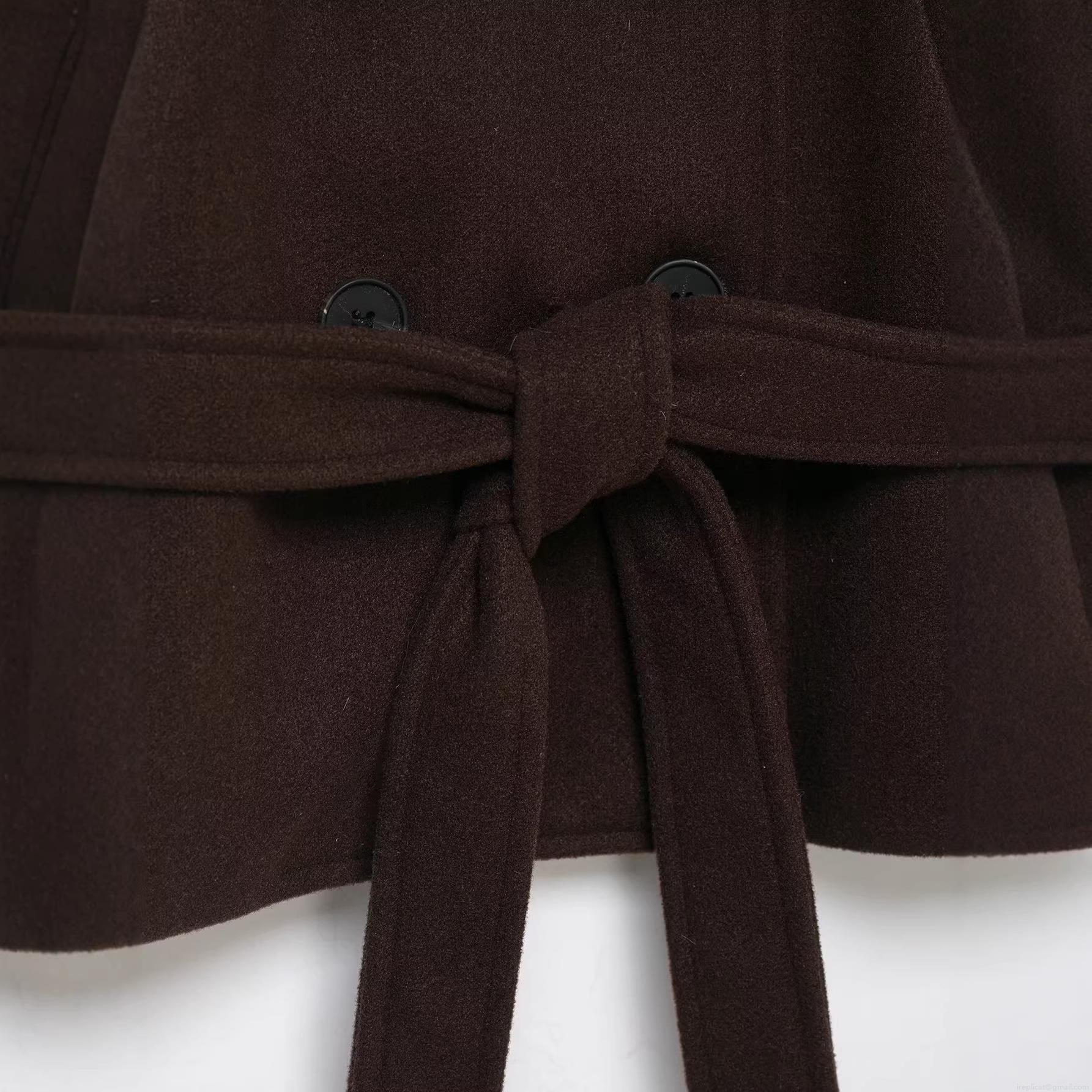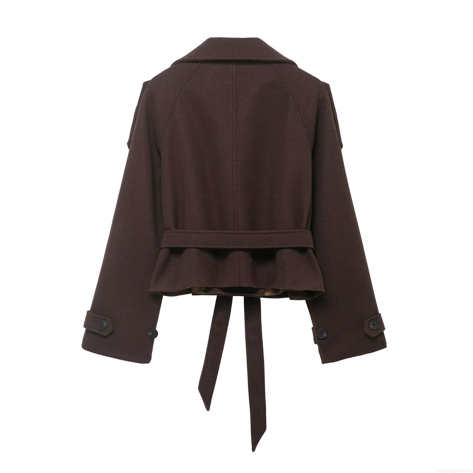 • Women's Double Breasted Short Woolen Coat With Belt Long Sleeve Turn-down Collar Loose Fit Jacket Streetwear Outwear Ladies Autumn Winter Solid Color Pea Coat