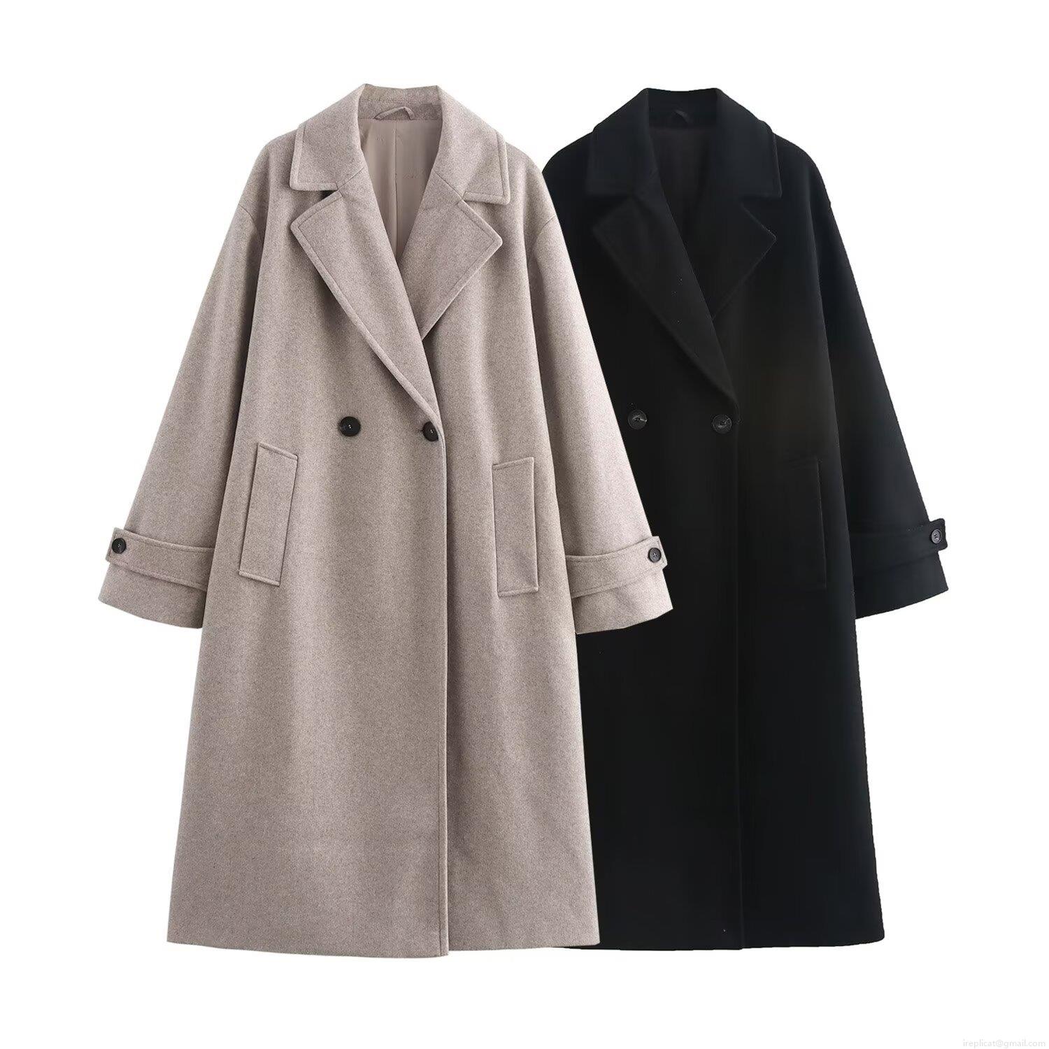 • Women's Double Breasted Woolen Blend Coat Long Sleeve Lapel Elegant Hepburn Style Loose Fit Winter Warm Long Overcoat Jacket for Ladies
