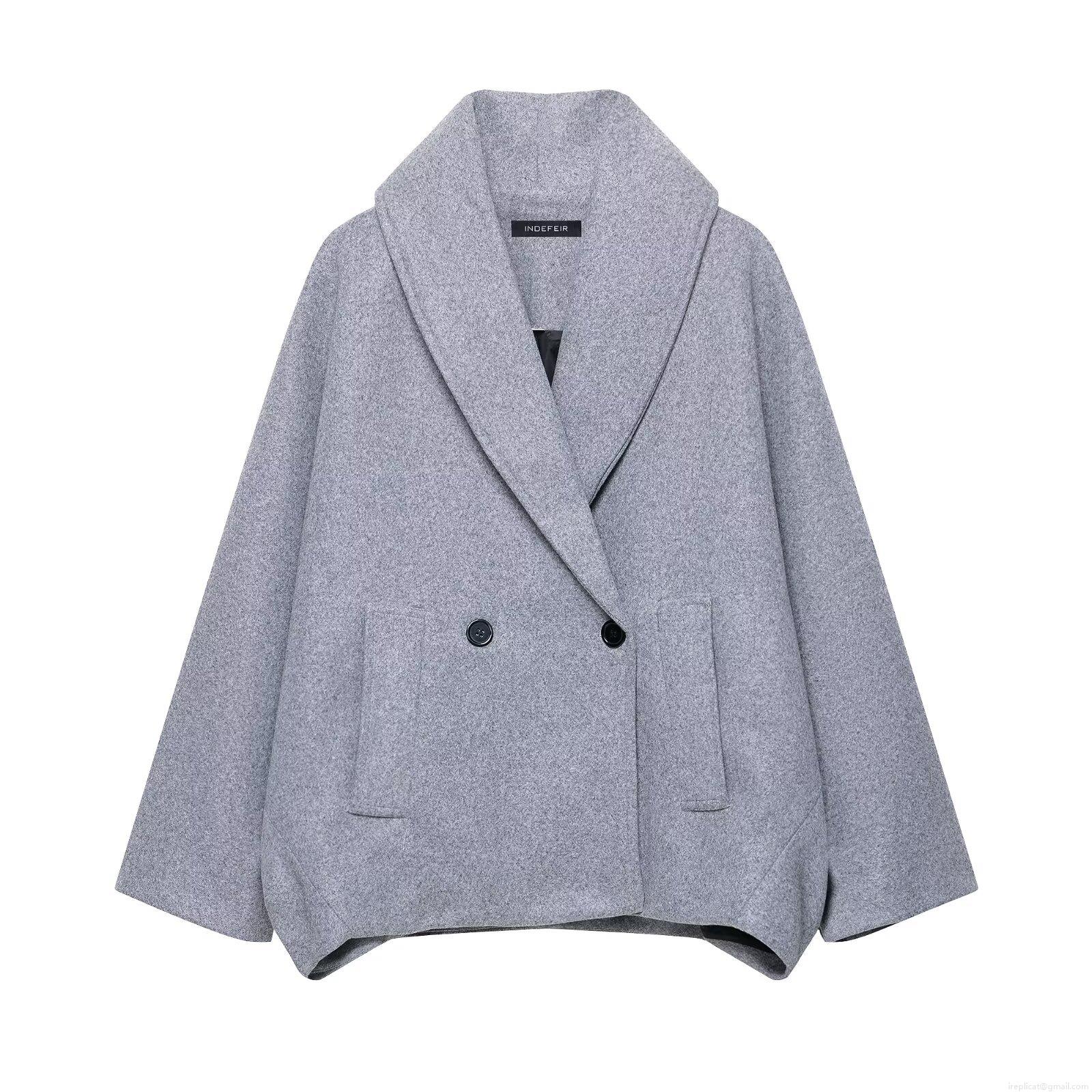 • Women's Double Breasted Woolen Coat Autumn Winter Mid-Length Lapel Loose Fit Polyester Overcoat Casual Streetwear Outerwear Jacket For Women