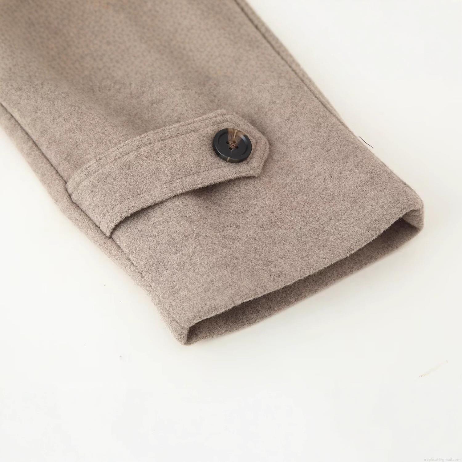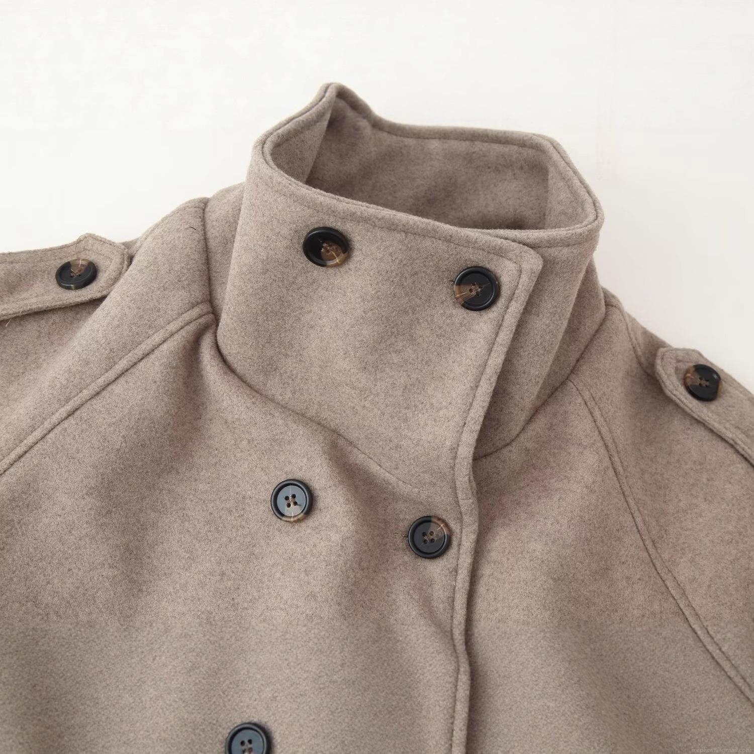 • Women's Double Breasted Woolen Coat Stand Collar Long Sleeve Khaki Jacket Autumn Winter Outerwear European Street Style Pocket Epaulette Short Pea Coat For Women