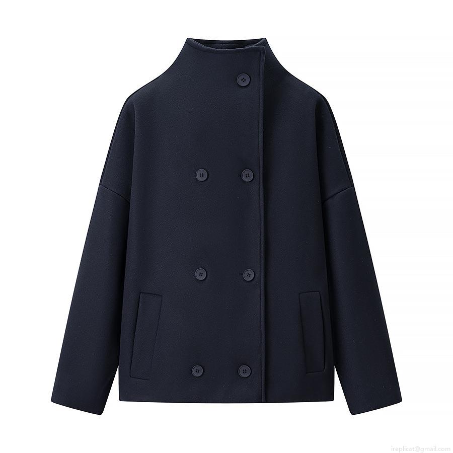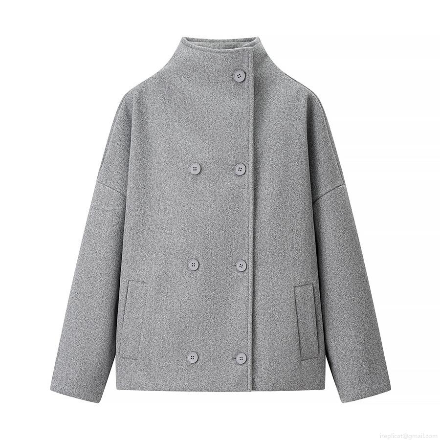 • Women's Double Breasted Woolen Coat Stand Collar Polyester Short Peacoat Elegant Solid Color Autumn Winter Outerwear For Ladies Office Daily Fashion