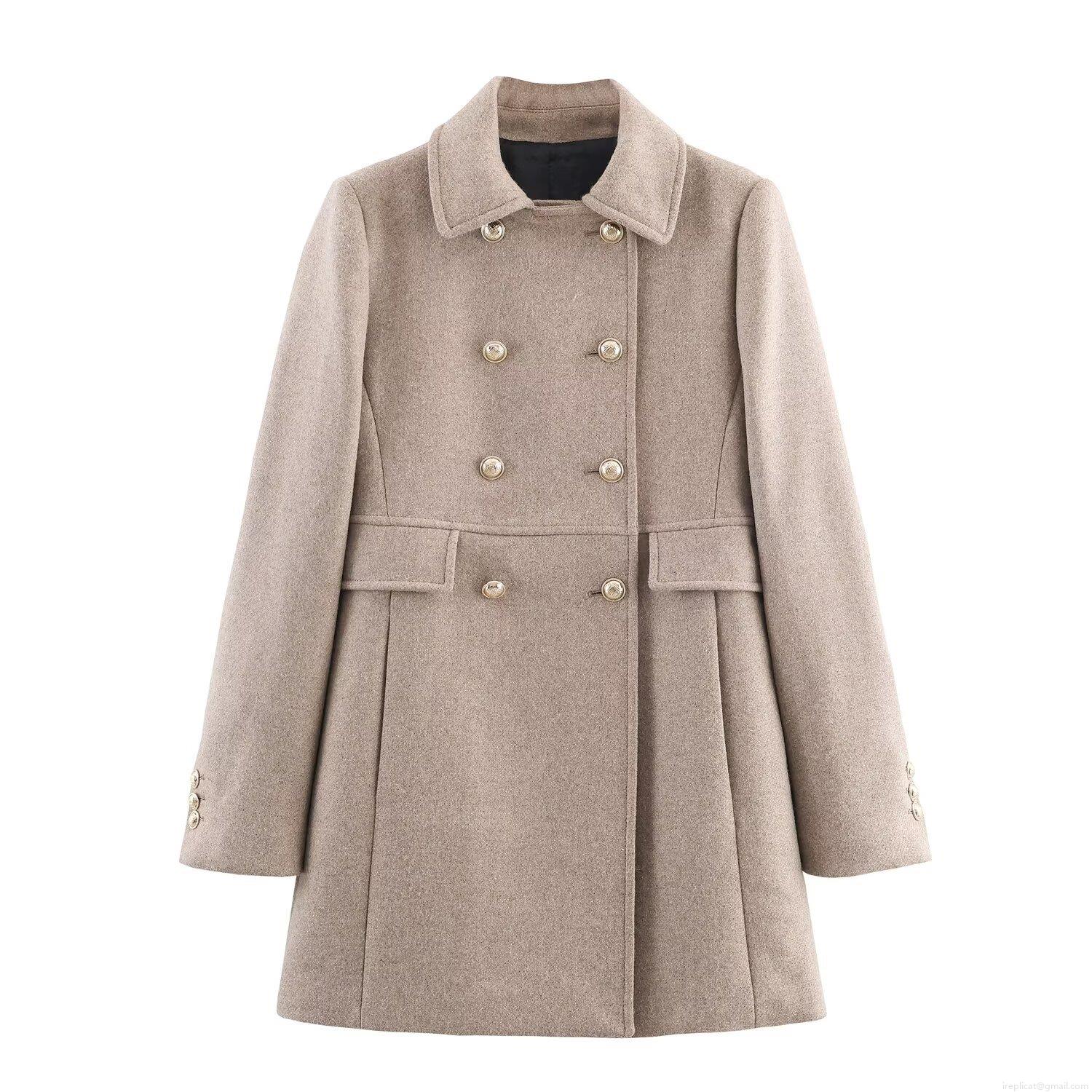 Women's Double Breasted Woolen Coat Winter Elegant Lapel Mid-length Jacket Casual Streetwear Polyester Blend Outerwear Khaki Black