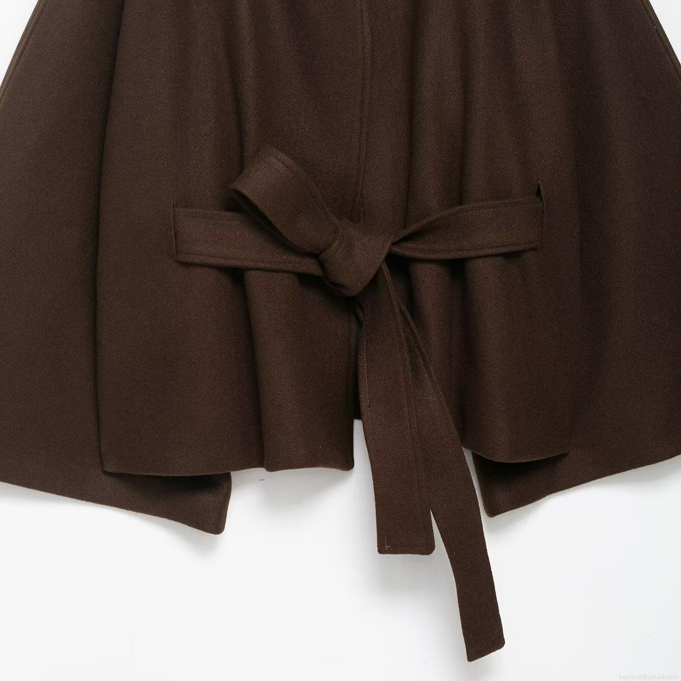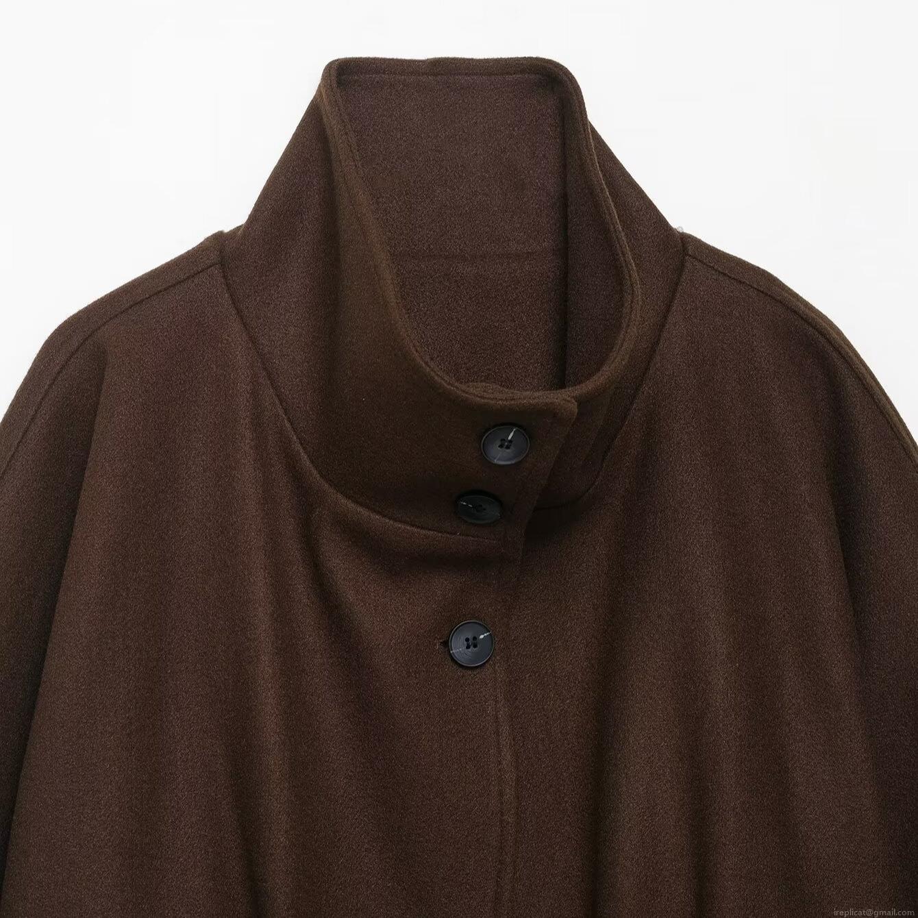 • Women's Elegant 100% Polyester Cloak Coat Stand Collar Belted Wool-Like Cape Jacket Solid Color Long Sleeve Outerwear For Office Commute Autumn Fashion Lady Warm Trench Coat