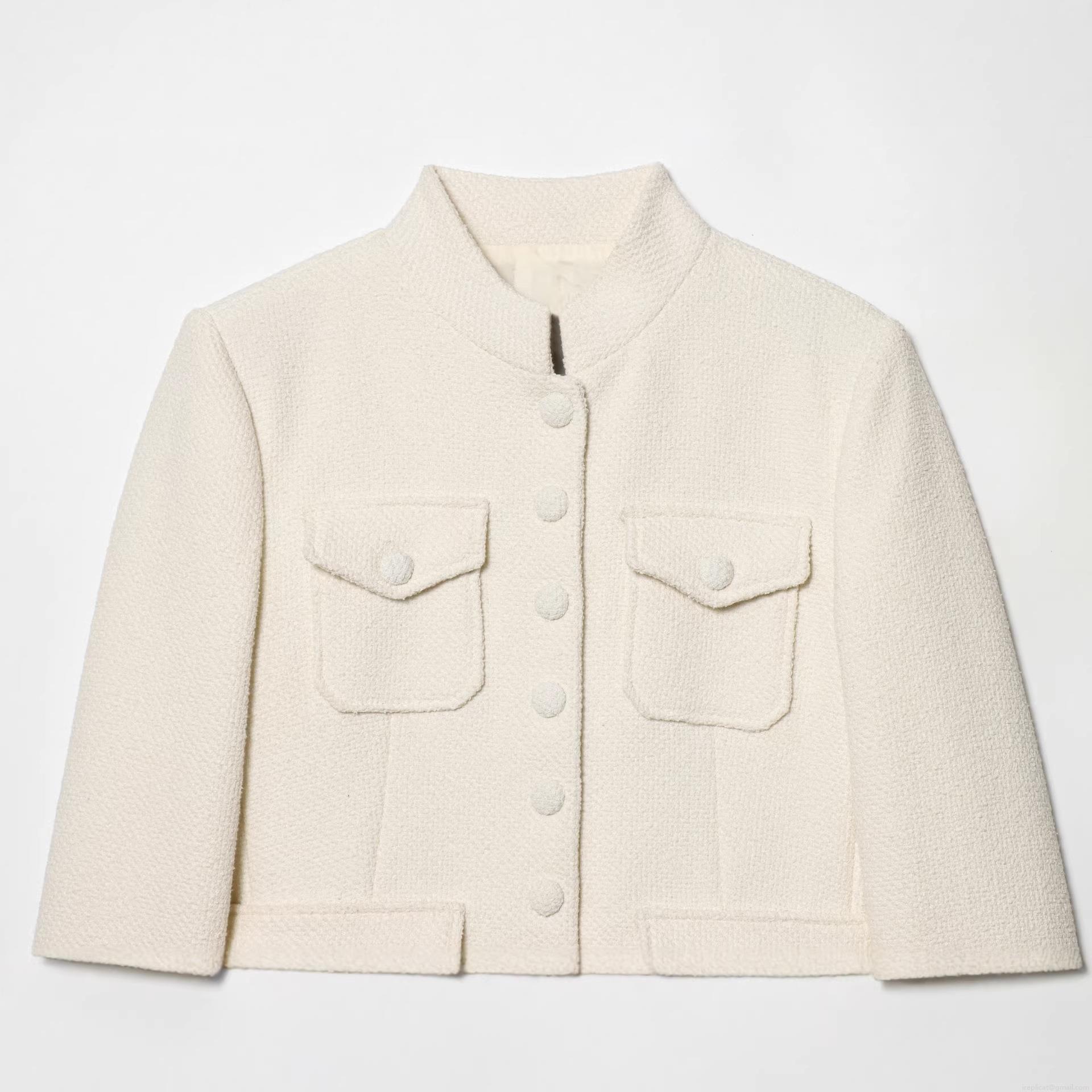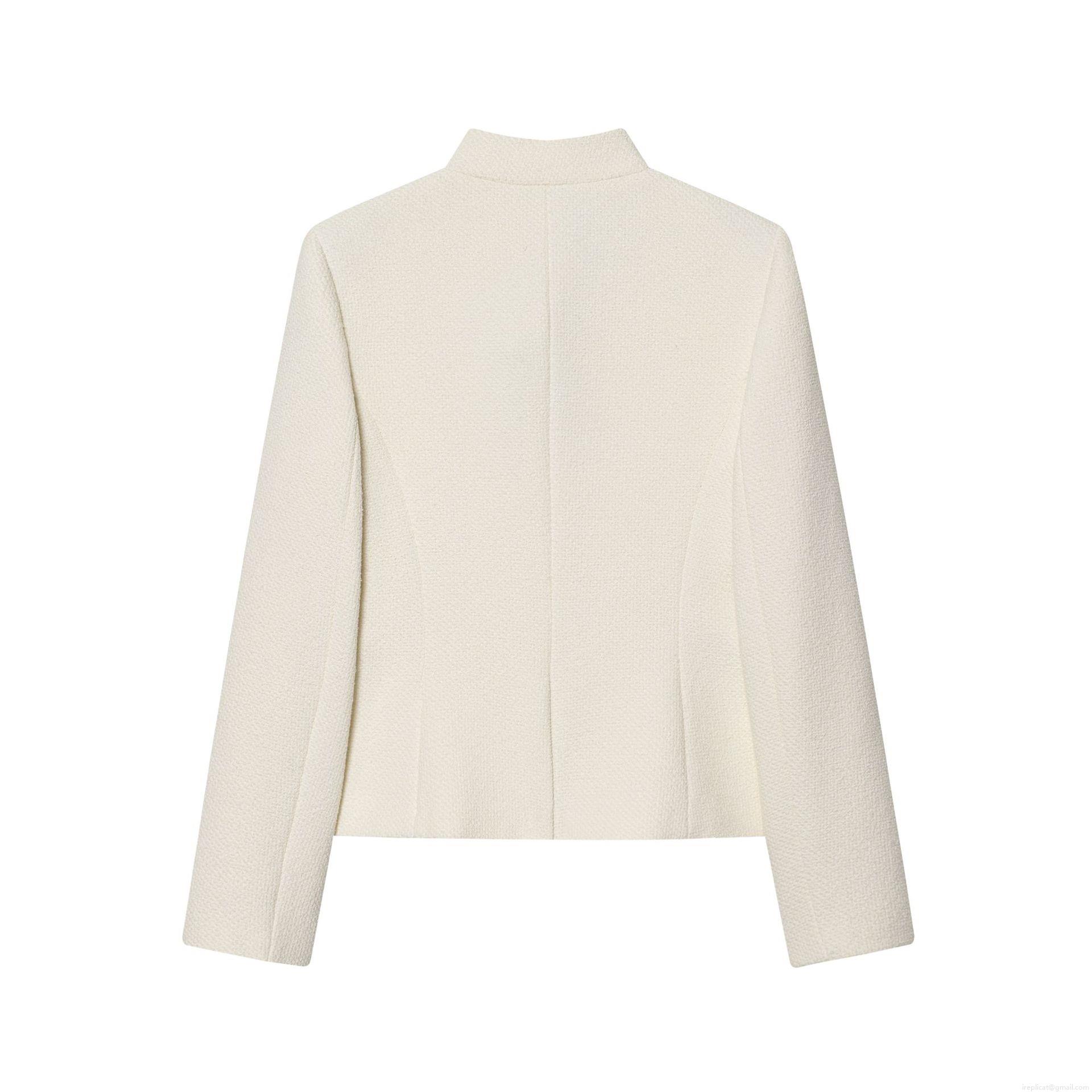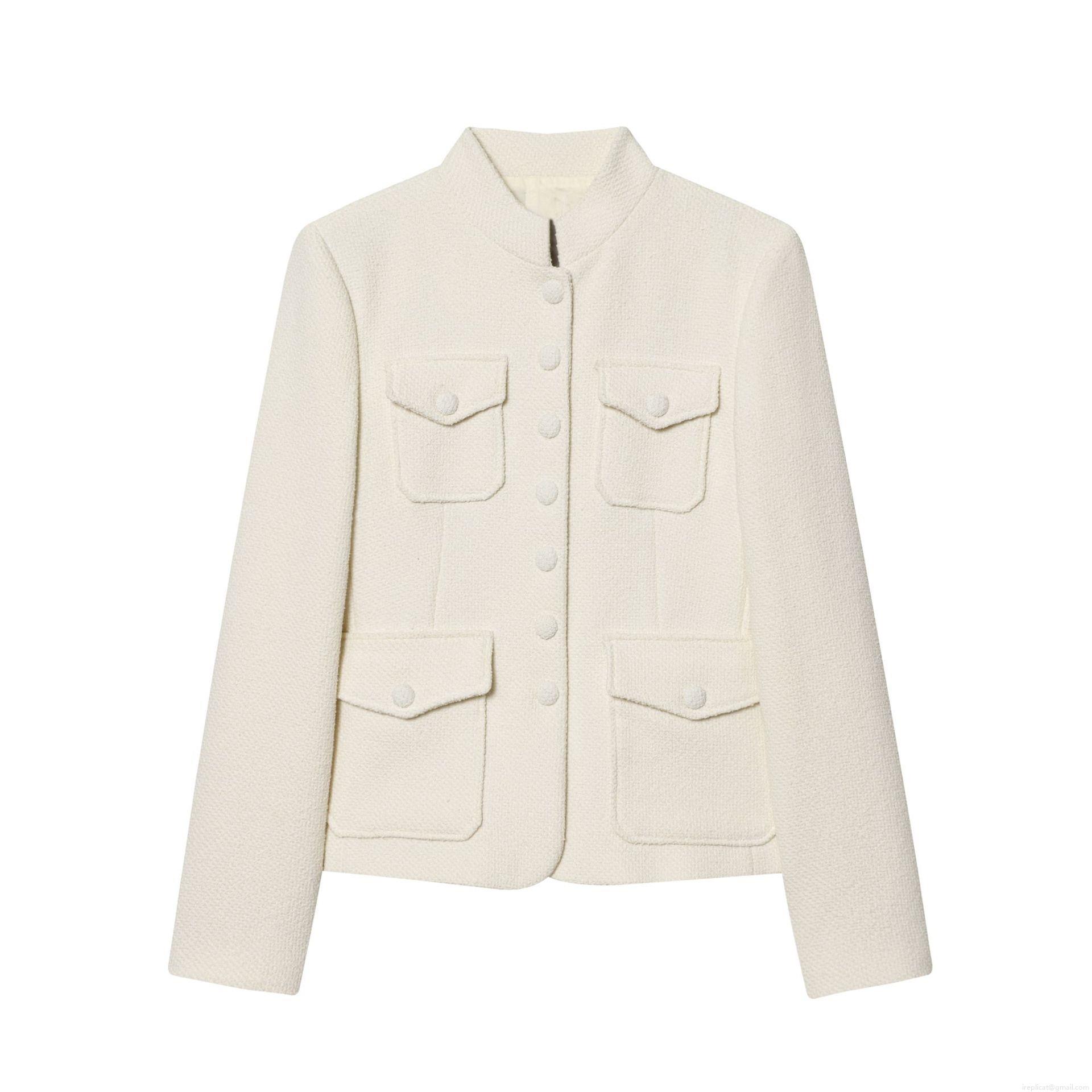• Women's Elegant 100% Polyester Tweed Jacket Stand Collar Four Flap Pockets Single Breasted Casual Western Style Blazer Outwear For Daily Office Party