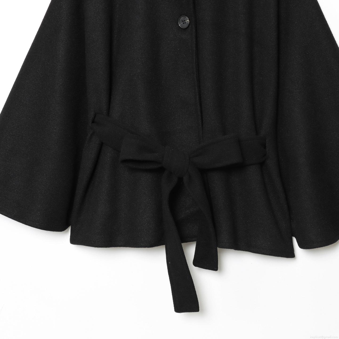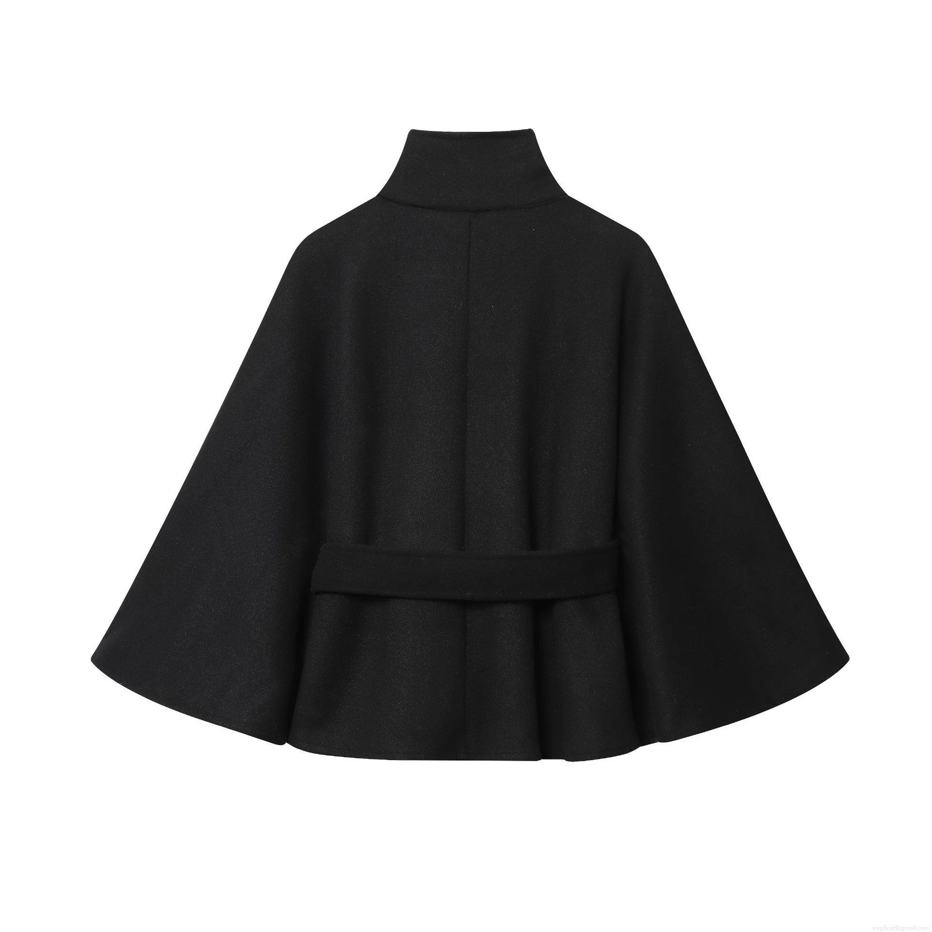 • Women's Elegant Black Cape Coat Wool-Like Blend High Neck Cloak Jacket With Waist Belt Autumn Winter Solid Color Slim Outwear For Women