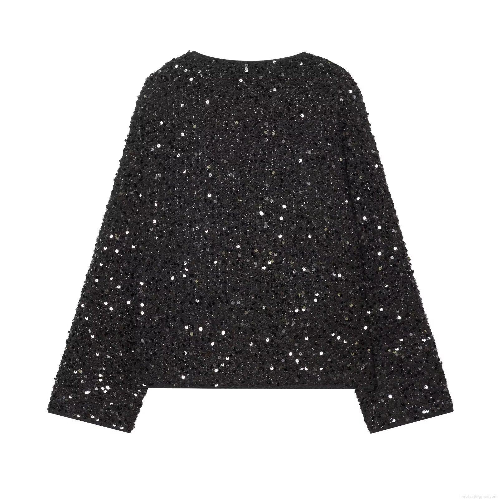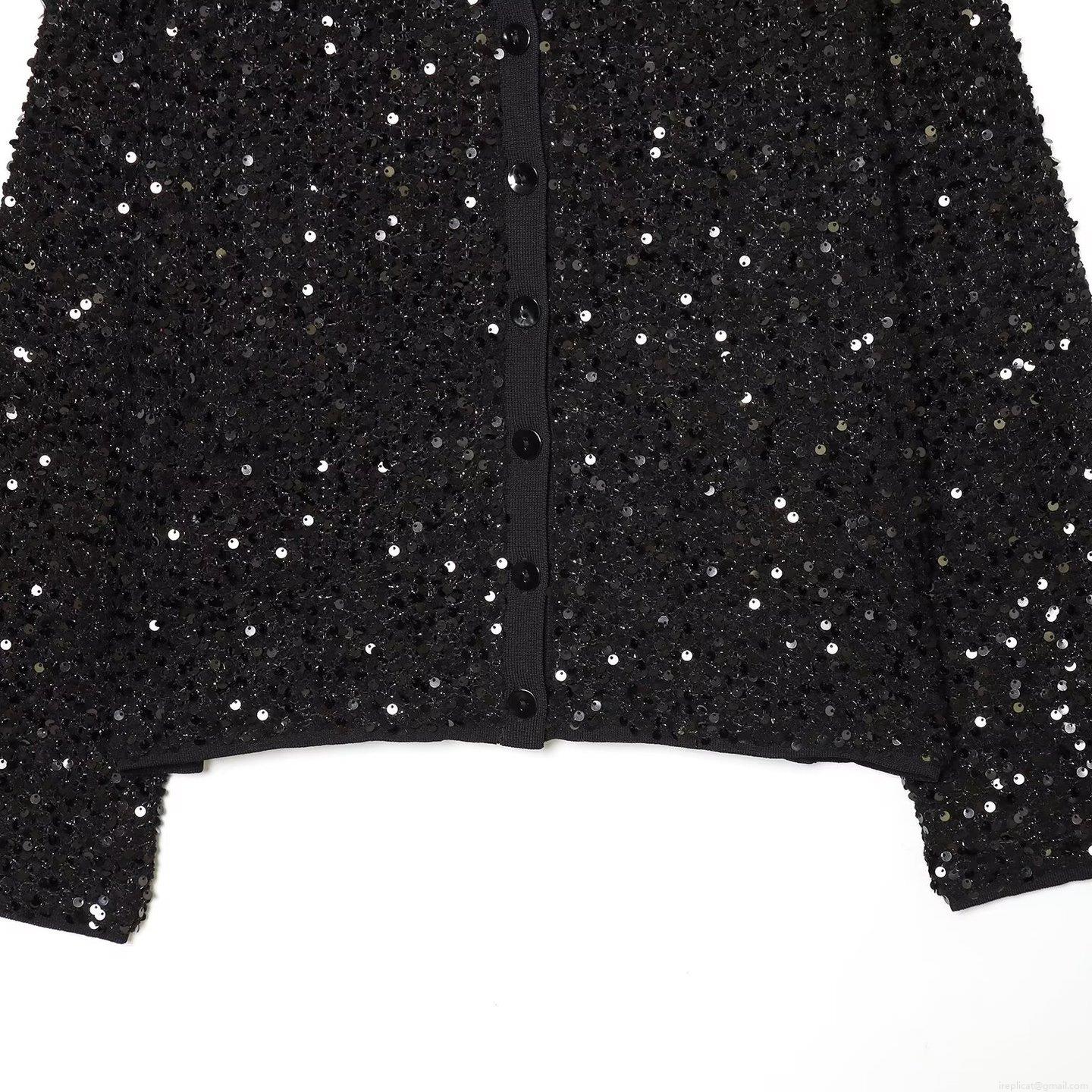 • Women's Elegant Black Sequin Cardigan Jacket Round Neck Long Sleeve Single Breasted Shimmer Glitter Coat For Party Evening Office Commute Casual Winter Fashion Outerwear