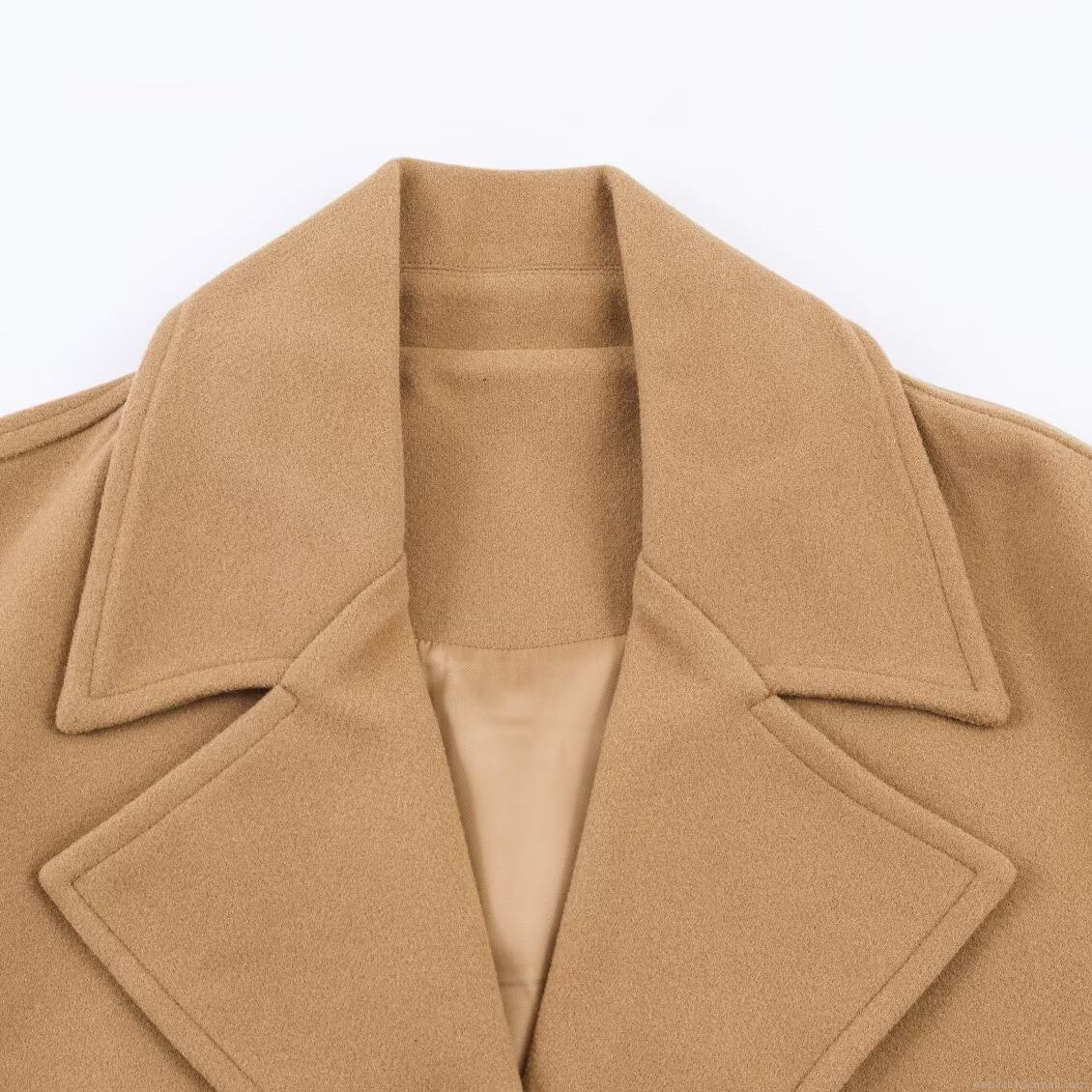 • Women's Elegant Camel Mid-length Woolen Coat Loose Fit Lapel Single Breasted Office Commuter Jacket Winter Warm Outerwear Polyester Blend Casual Overcoat