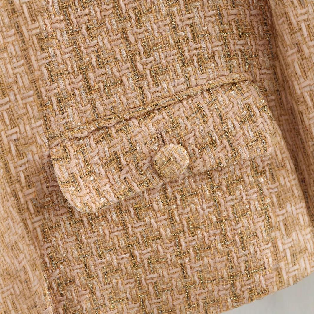• Women's Elegant Chanel Style Tweed Jacket With Gold Thread Round Neck Long Sleeve Single Breasted Button Down Crop Coat For Office Daily Streetwear Khaki