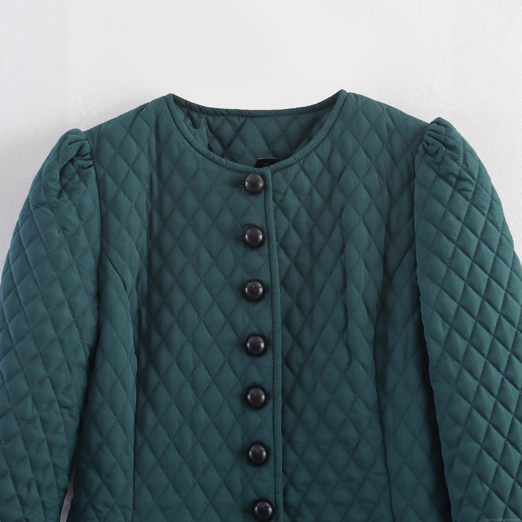 Solid Color, Diamond Pattern, Puff Sleeves, Diamond Quilting, Single Row With Multiple Deductions