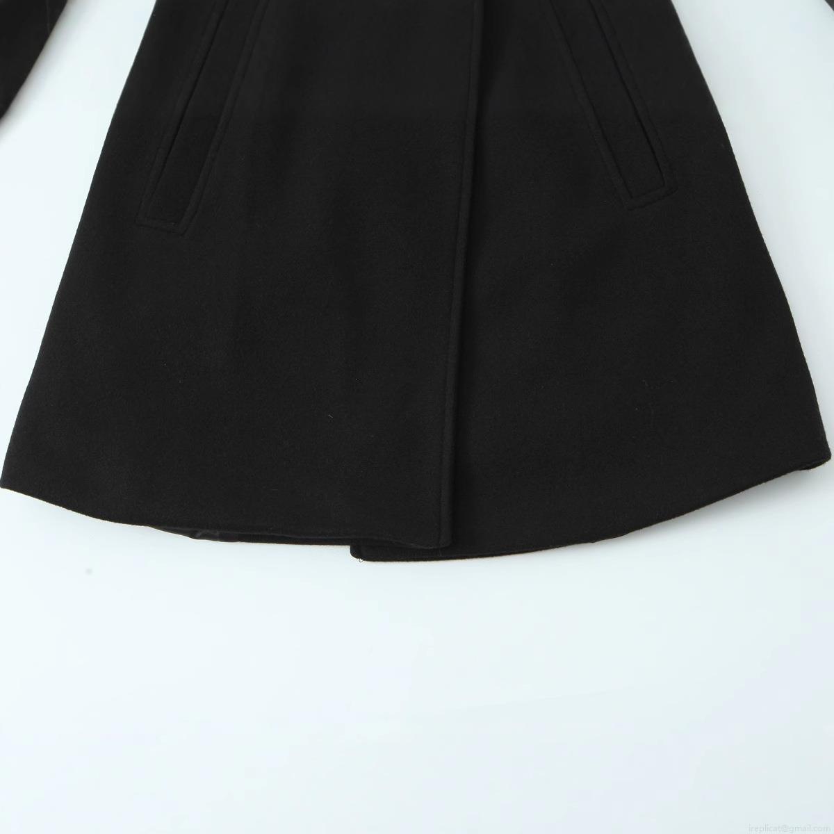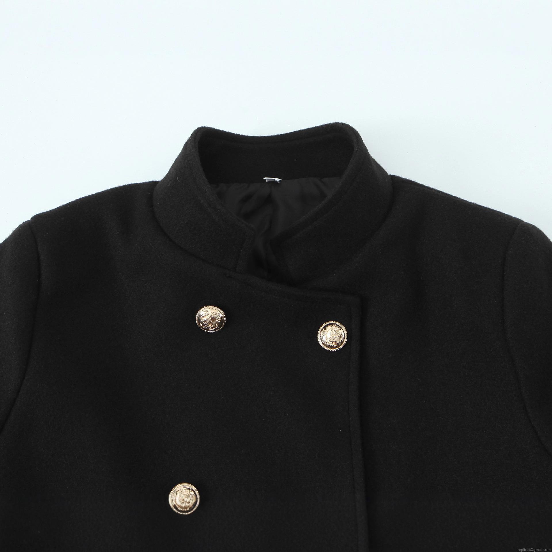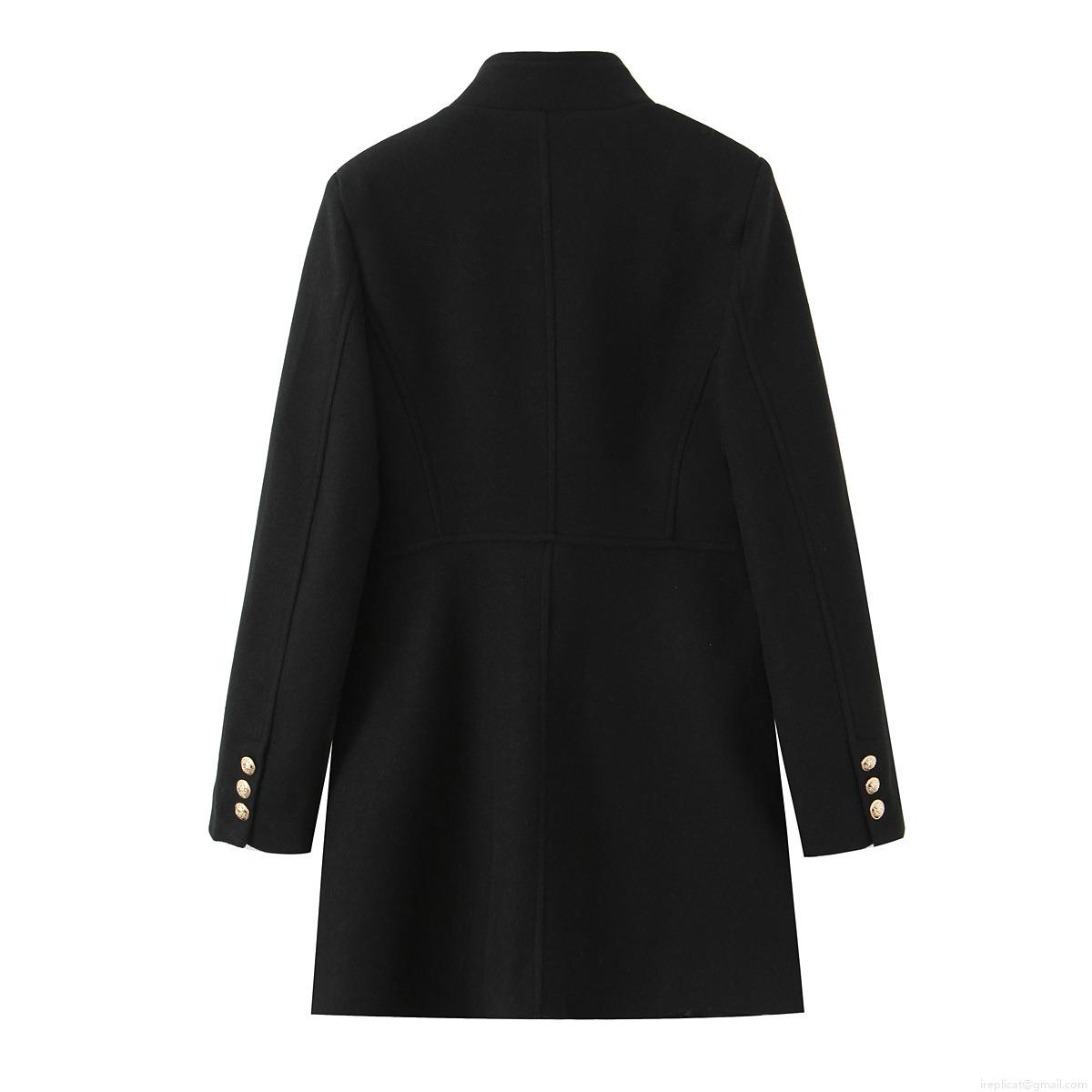 • Women's Elegant Double Breasted Woolen Blend Coat With Gold Metal Buttons Stand Collar Mid Length Slim Fit Jacket For Fall Winter Black Outerwear