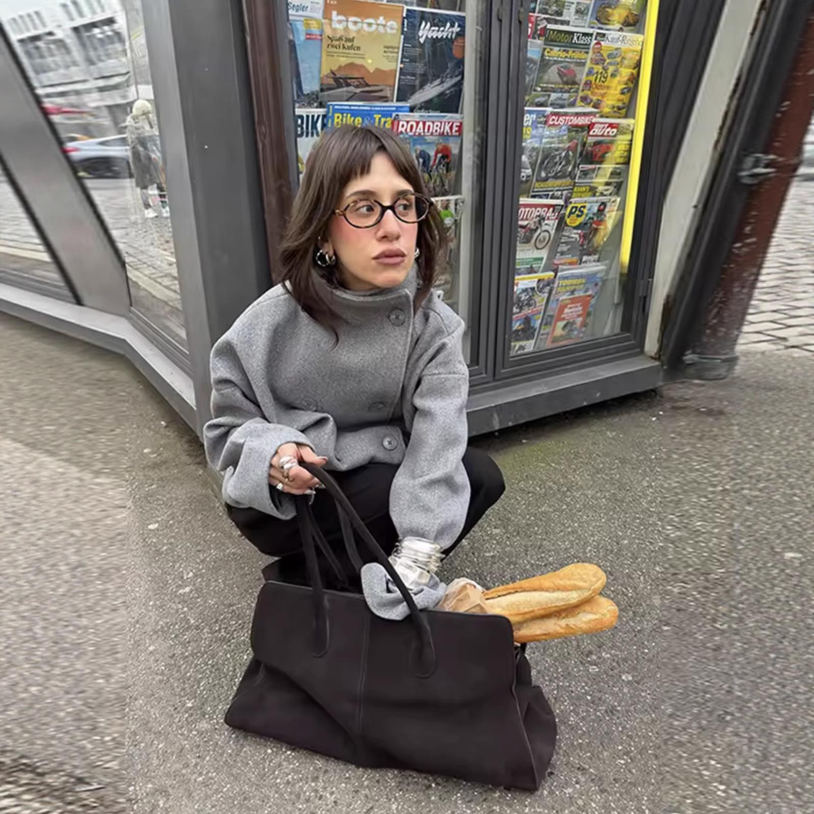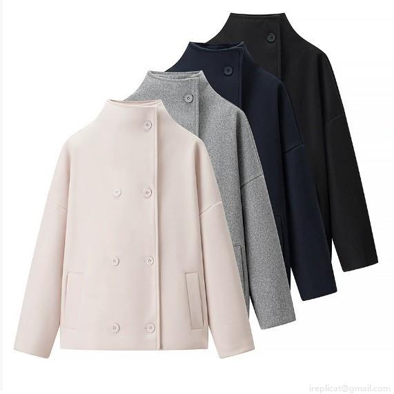 • Women's Elegant Double Breasted Woolen Blend Short Coat Stand Collar Casual Loose Jacket Office Wear Solid Color Outwear