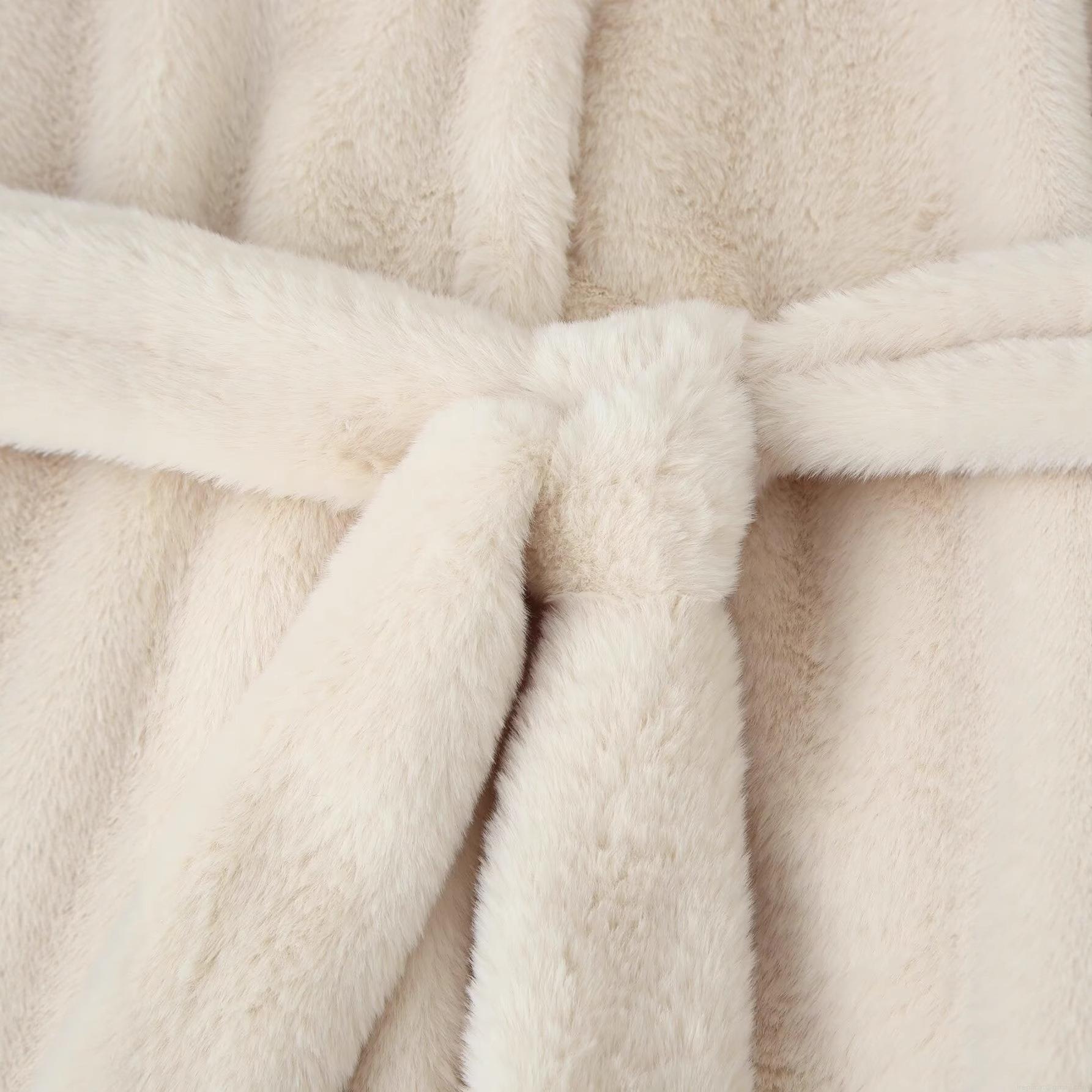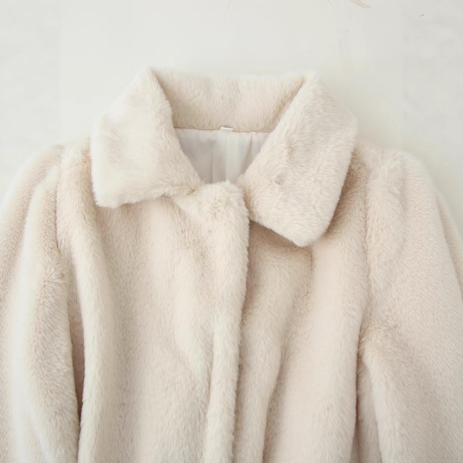 • Women's Elegant Faux Fur Coat Belted Warm Plush Jacket Lapel Long Sleeve Solid Color Winter Outerwear Overcoat For Ladies Casual Fashion Soft Shaggy Cardigan