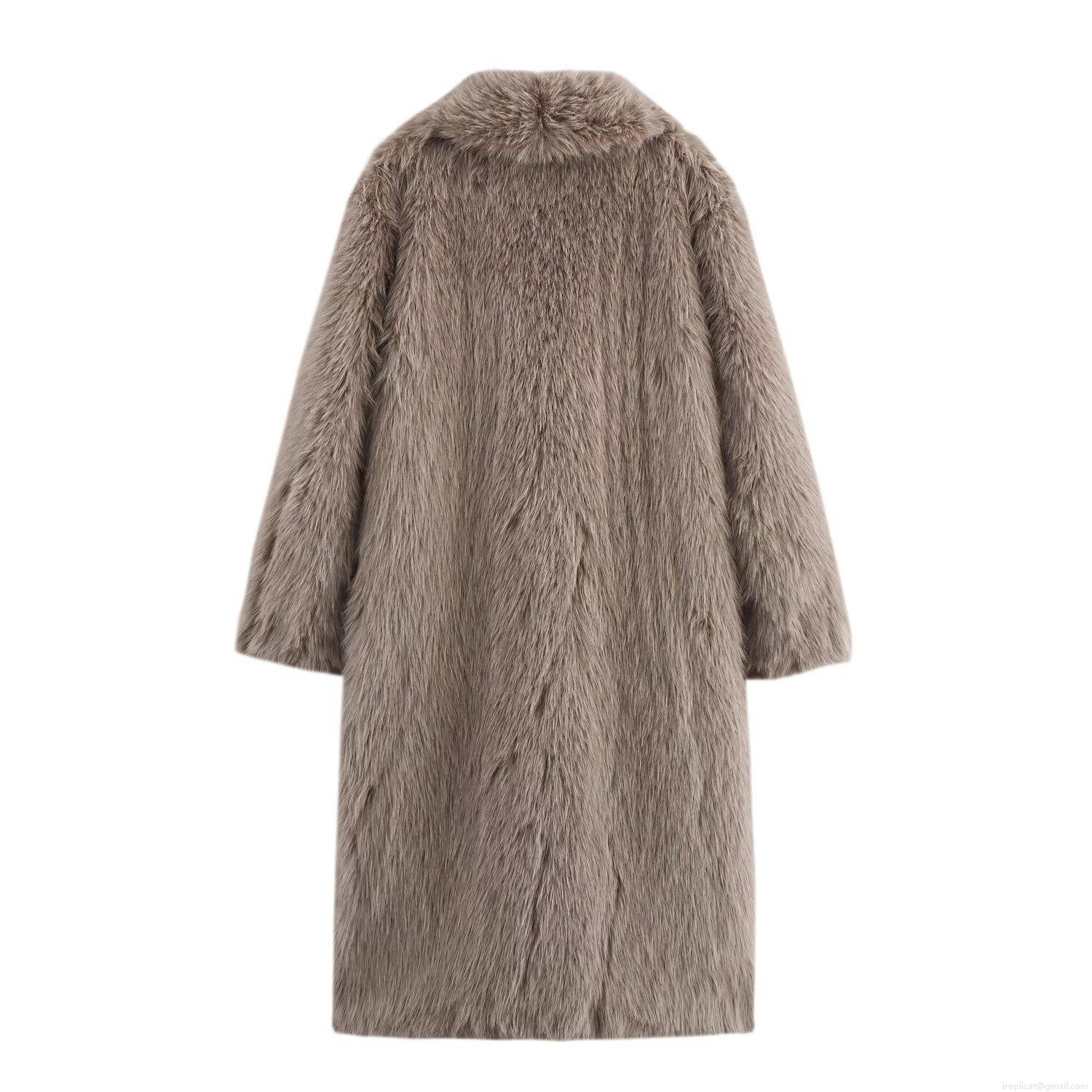 Women's Elegant Faux Fur Coat Long Hair Warm Soft Thick Polyester Outerwear Fashion Europe Style Lapel Button Trench Coat For Winter Spring Streetwear