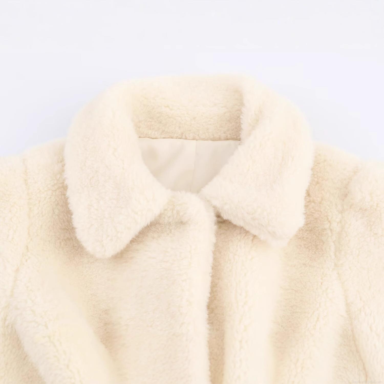 • Women's Elegant Faux Fur Coat Soft Polyester Plush Warm Winter Outerwear With Belt Solid Color Lapel Long Sleeve Jacket For Casual Party
