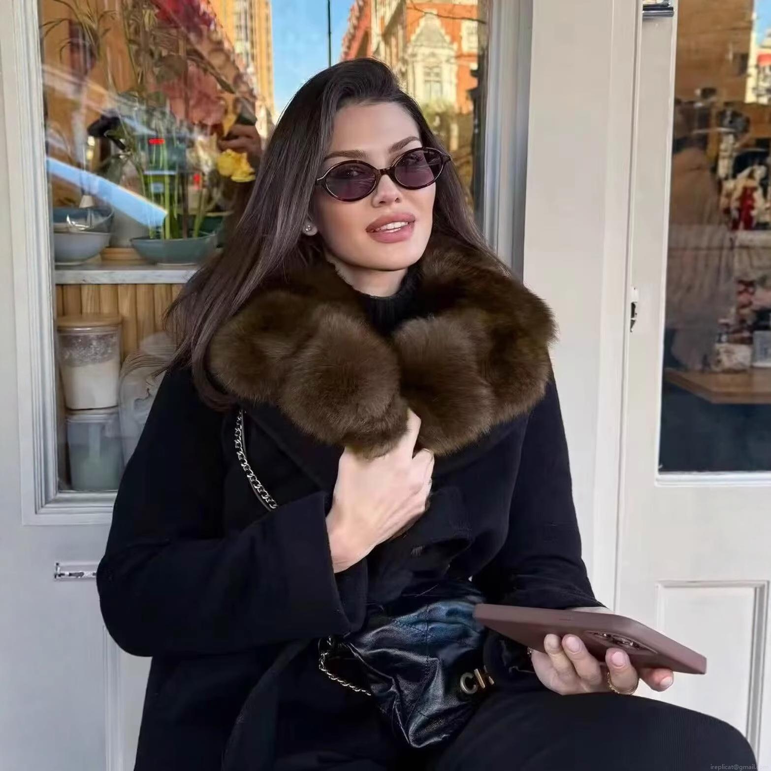• Women's Elegant Faux Fur Collar Suede Jacket Wool Blend Short Coat With Waist Tie Belt Street Fashion Lady Winter Outerwear