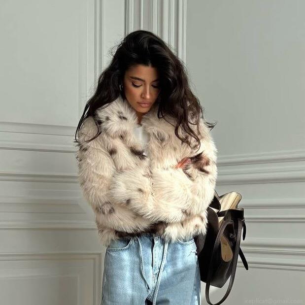 • Women's Elegant Faux Fur Jacket Winter Warm Leopard Print Short Coat With Lapel Collar Long Sleeve Zipper Plush Outerwear For Ladies