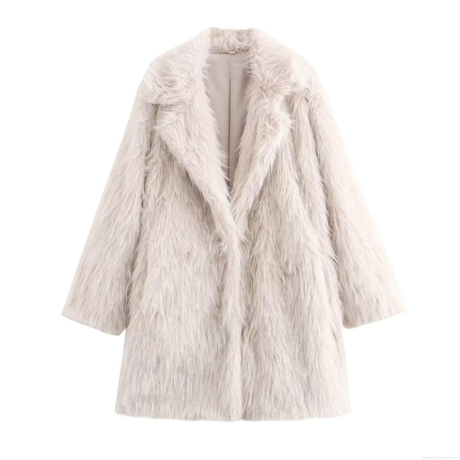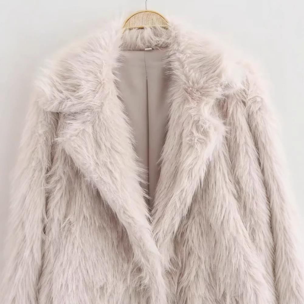 • Women's Elegant Faux Fur Short Coat Fashion Lapel Long Sleeve Plush Jacket Winter Warm Outerwear Luxury Solid Color Overcoat For Lady