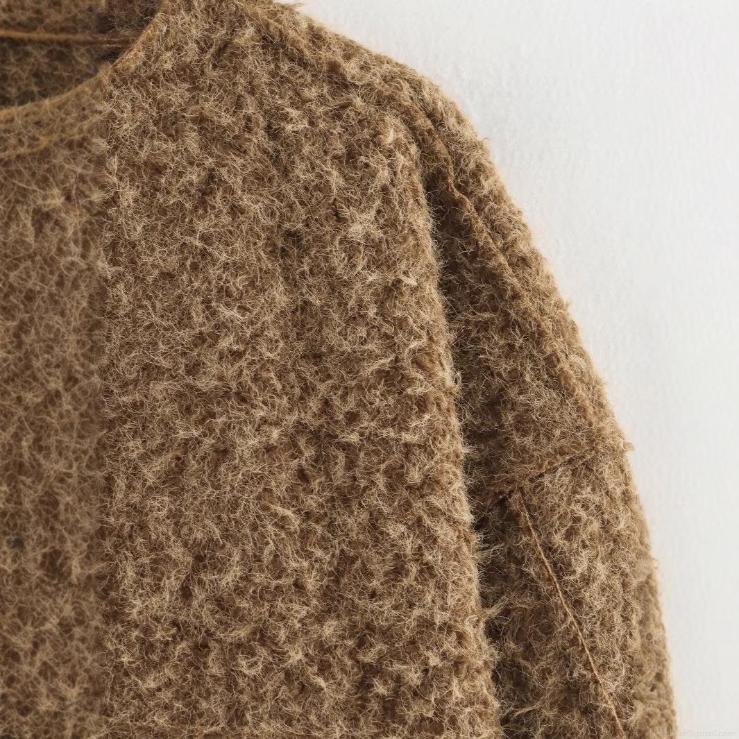 Solid Color, Plush Texture, Rough Edge Process, Crew Neck Design