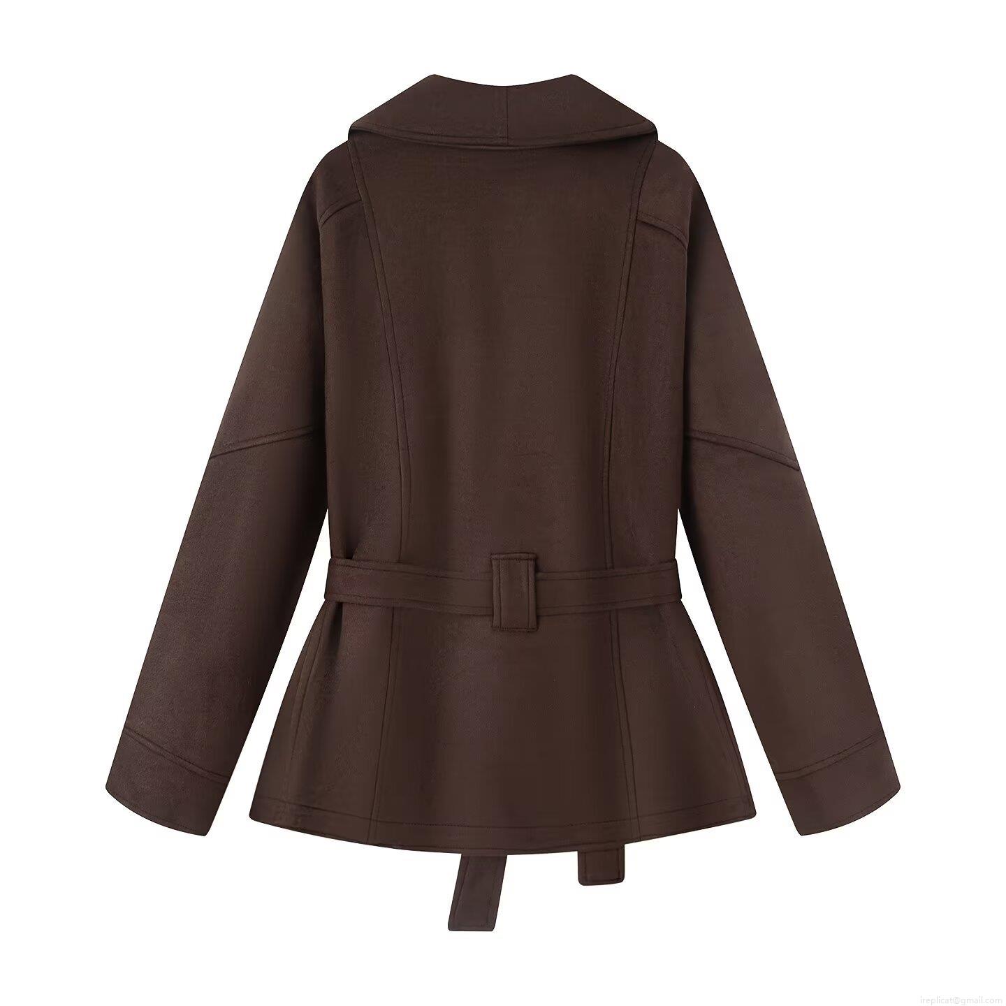• Women's Elegant Faux Suede Short Trench Coat Jacket With Waist Tie Belt Lapel Collar Long Sleeve Casual Outwear For Autumn Spring