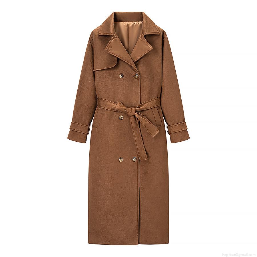 • Women's Elegant Faux Suede Trench Coat Double Breasted Long Jacket With Belt Autumn Winter Solid Color Outwear For Ladies