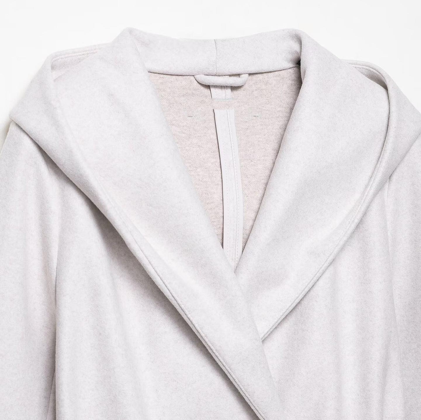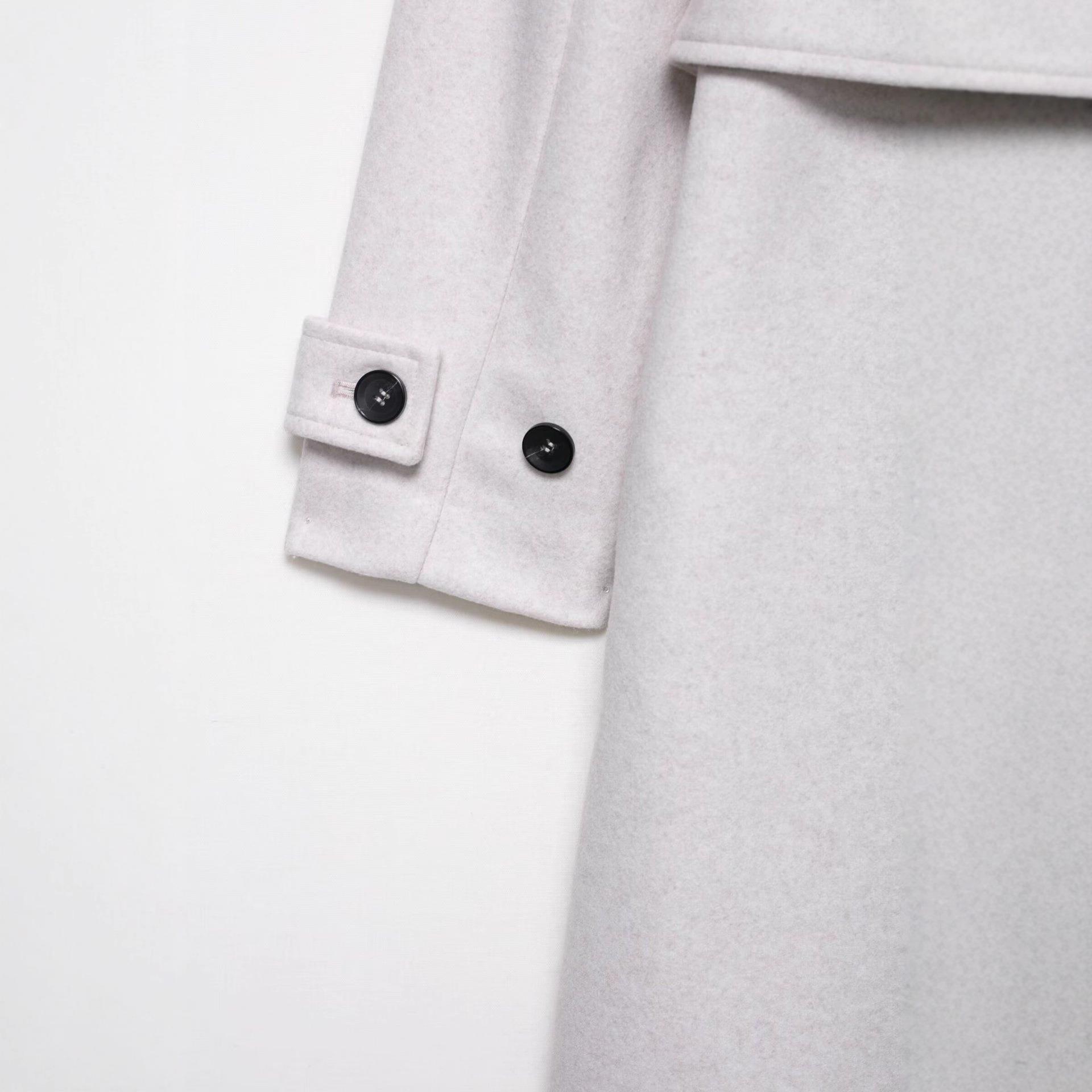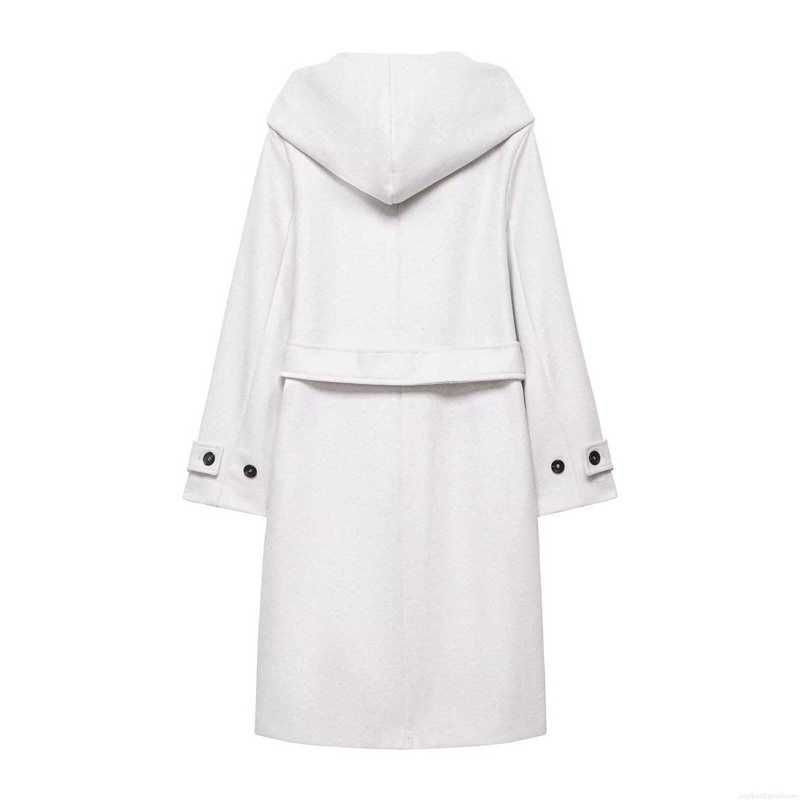 • Women's Elegant Hooded Long Woolen Coat With Waist Belt Double Breasted Loose Fit Solid Color Warm Jacket For Autumn Winter Casual Office Outerwear