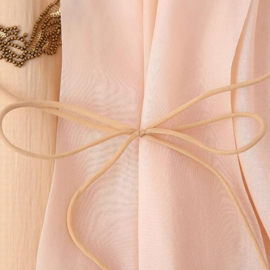 • Women's Elegant Kimono Jacket Chiffon Silk Blend Embroidered Beaded Wrap Top With Gold Floral Sequin Tie-Up Closure Short Outerwear For Party Evening