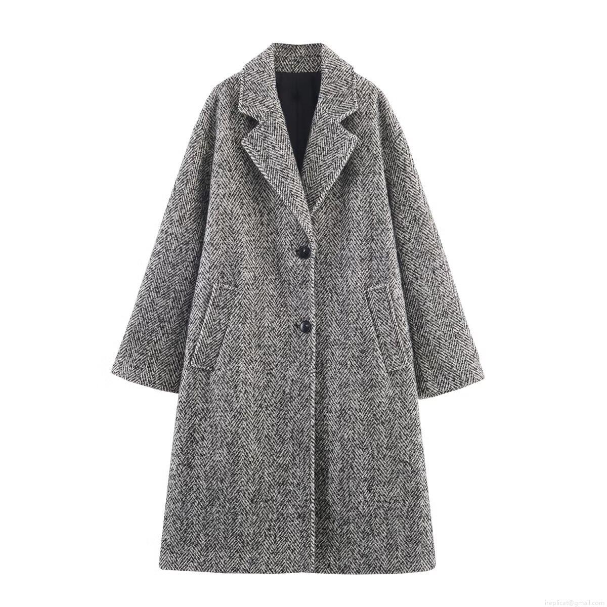 Women's Elegant Long Herringbone Wool Blend Overcoat Fashion Lapel Single Breasted Jacket Casual Long Sleeve Outerwear For Fall Winter