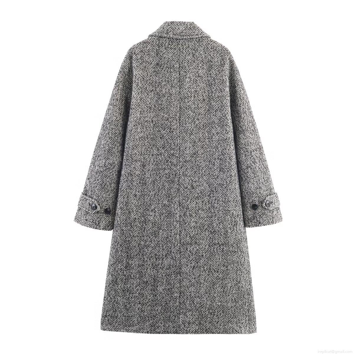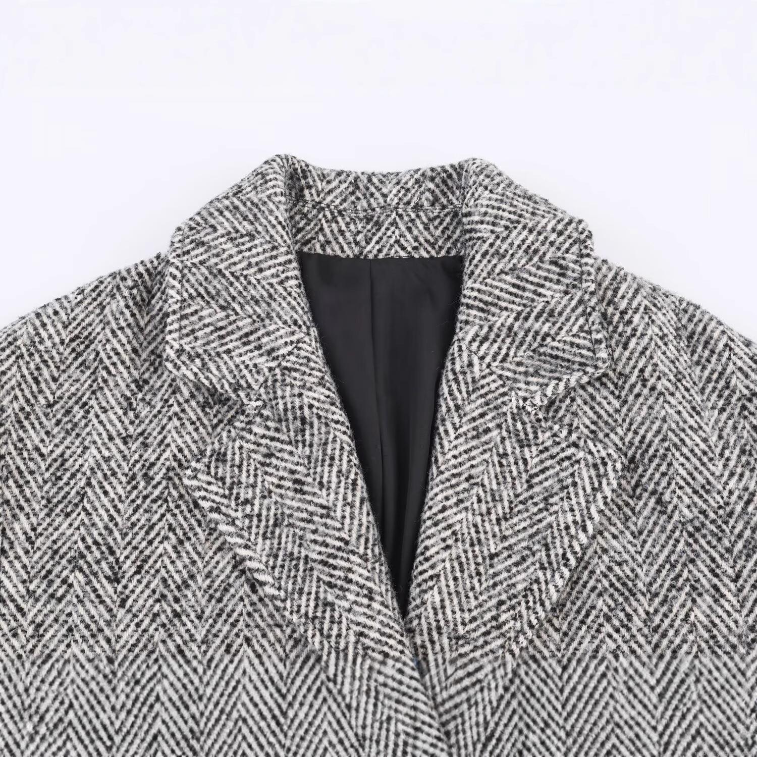• Women's Elegant Long Herringbone Wool Blend Overcoat Fashion Lapel Single Breasted Jacket Casual Long Sleeve Outerwear For Fall Winter