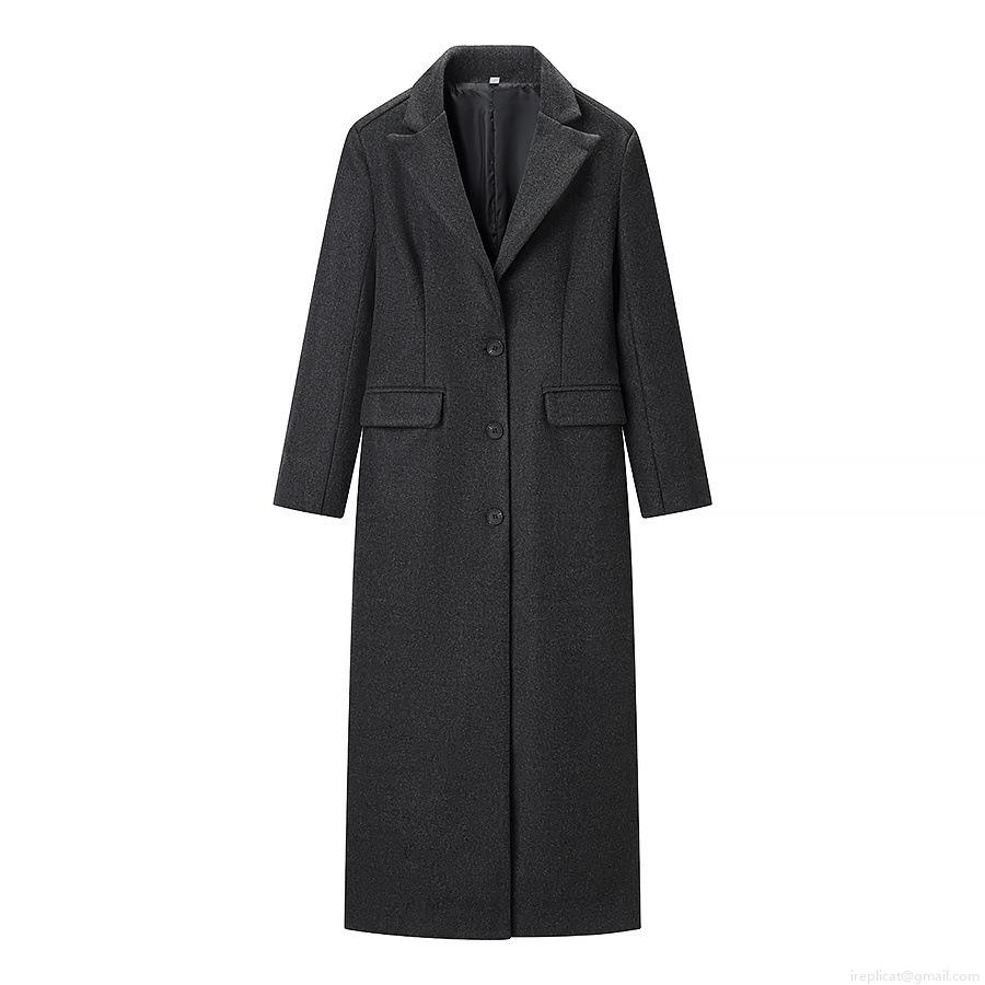 Women's Elegant Long Woolen Coat Charcoal Grey Single Breasted Lapel Overcoat Slim Fit Warm British Style Winter Outerwear Fashion Trench Coat for Ladies