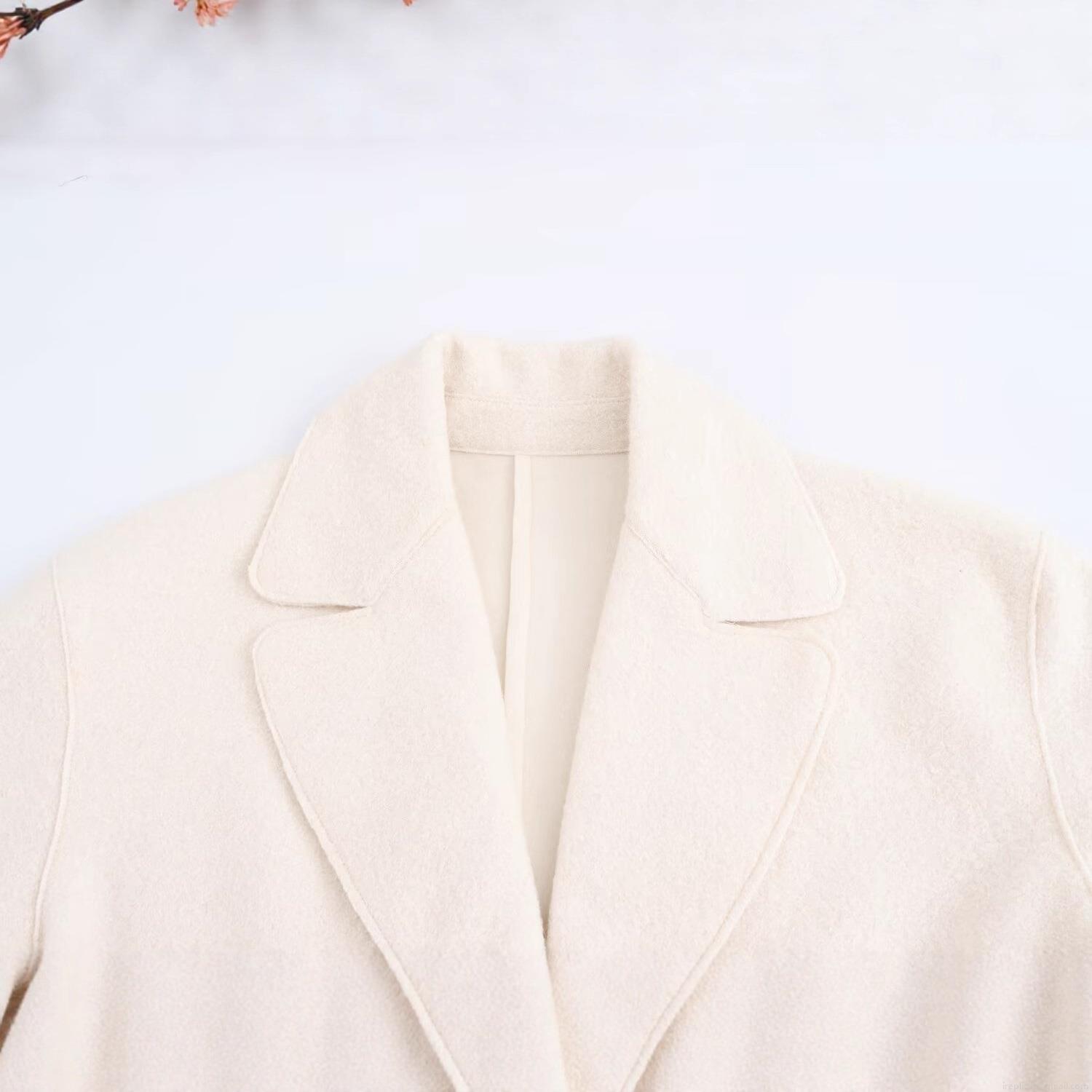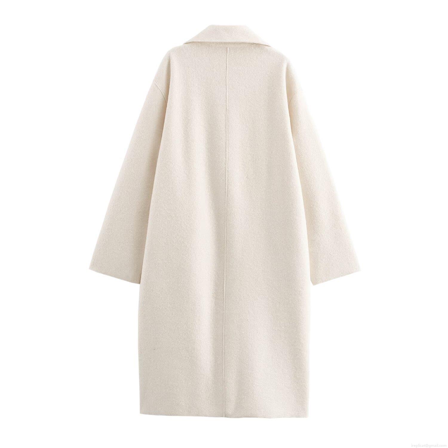 • Women's Elegant Long Woolen Coat Fashion Lapel Double Button Loose Trench Jacket Cream White Outerwear For Autumn Winter Ladies