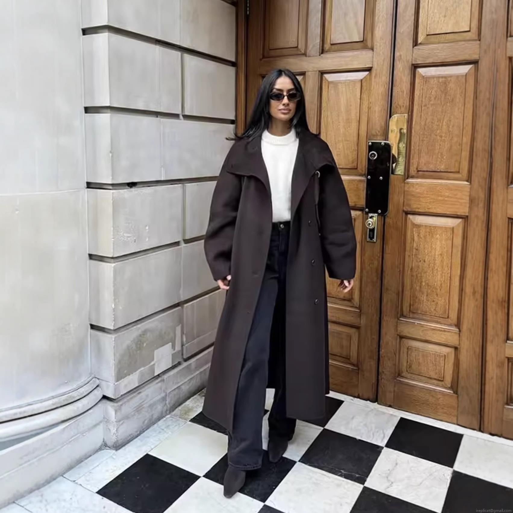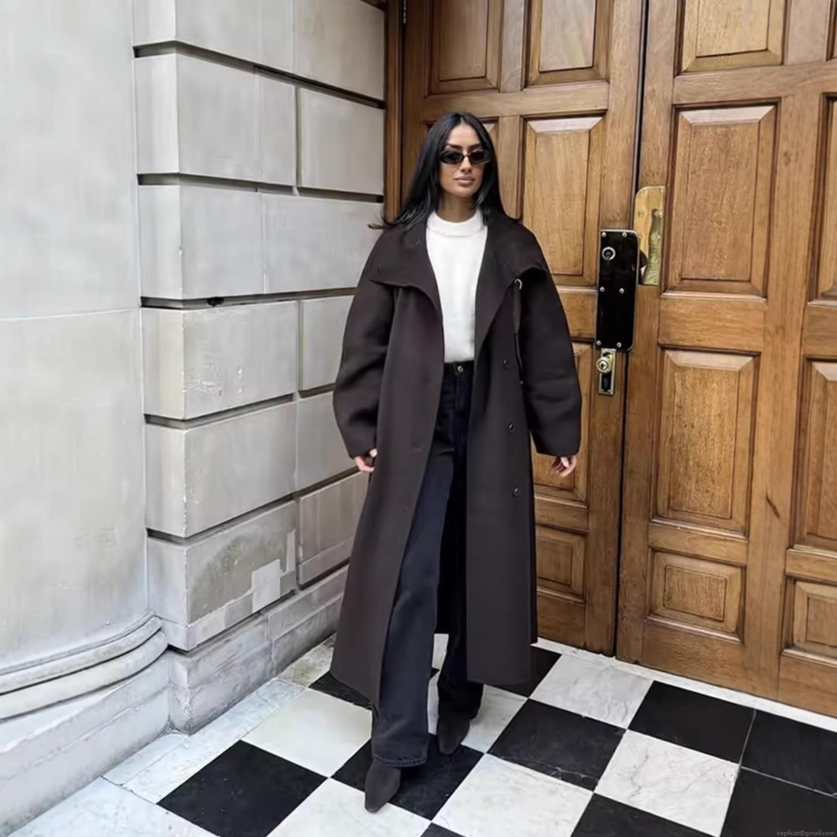• Women's Elegant Long Woolen Coat Lapel Double Breasted Winter Warm Jacket Thick Polyester Blend Trench Coat for Ladies Casual Office Wear