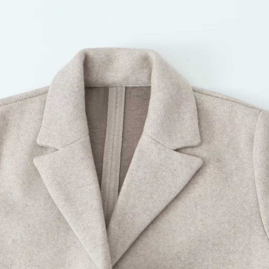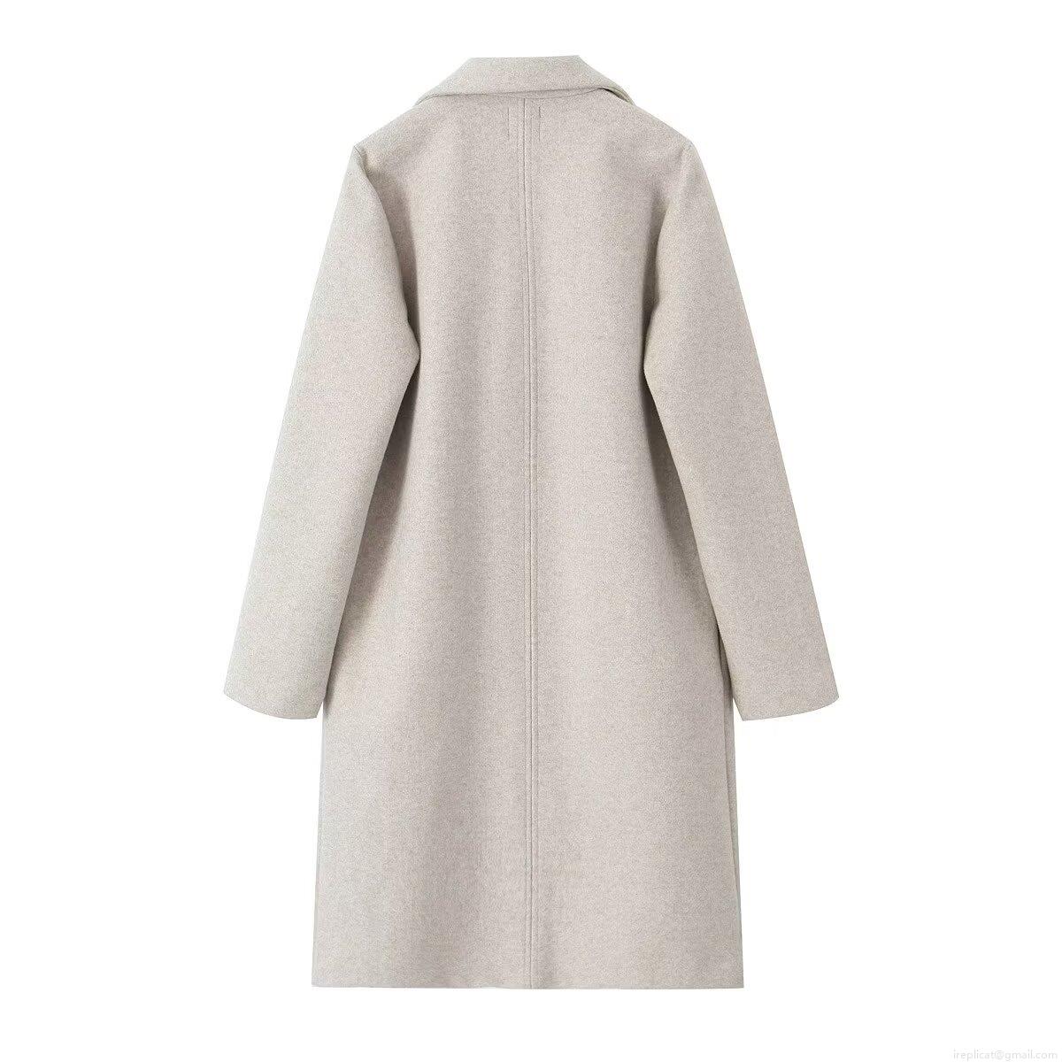 • Women's Elegant Long Woolen Coat Loose Fit Lapel Double Faced Felt Overcoat Casual Solid Color Autumn Winter Outerwear