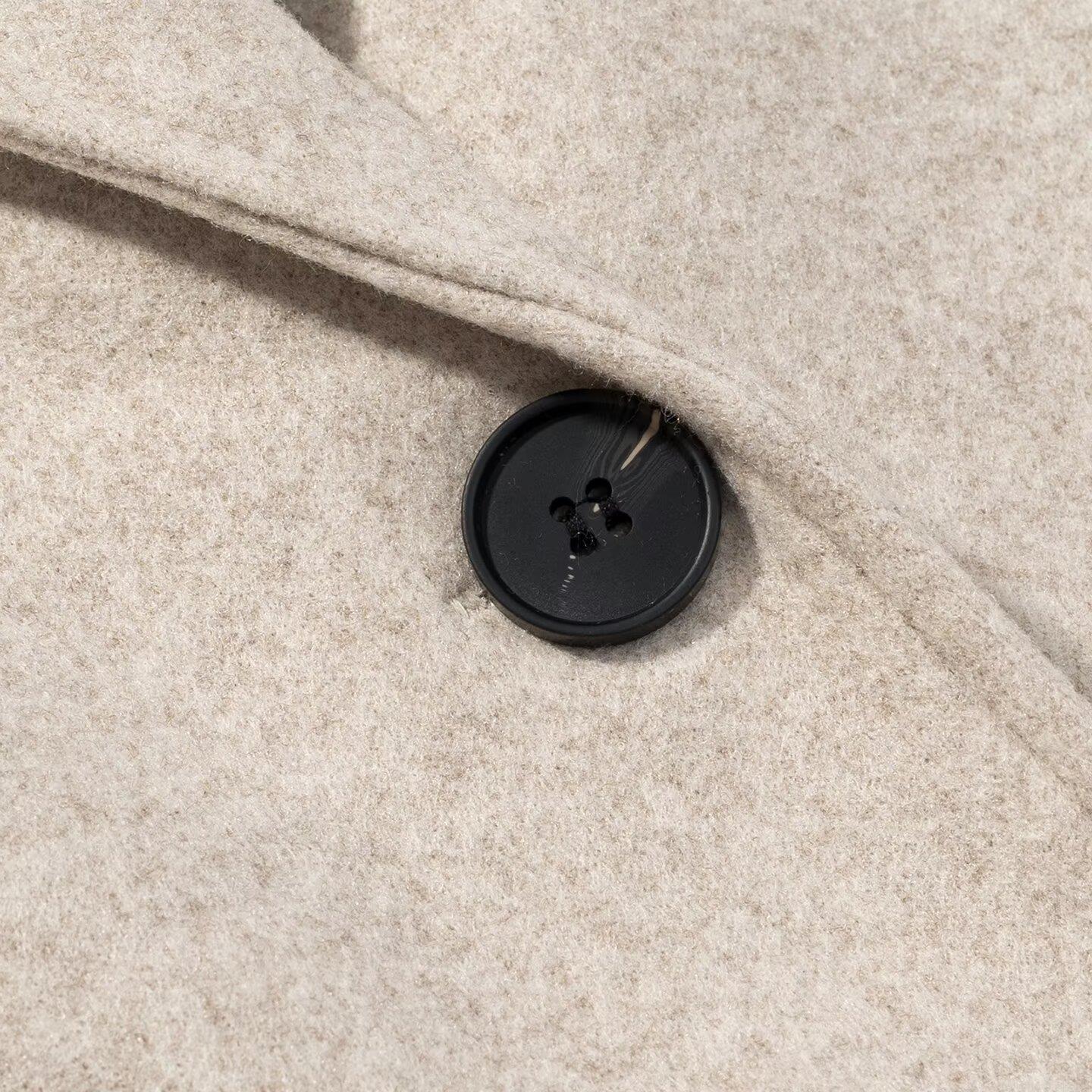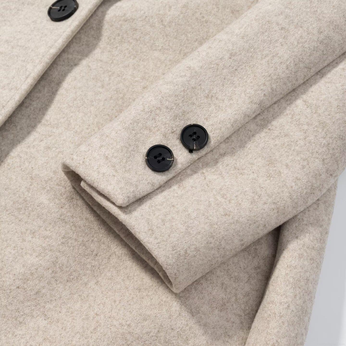 • Women's Elegant Long Woolen Coat Single Breasted Polyester Overcoat Autumn Winter Loose Fit Lapel Outerwear Solid Color Casual Commuter Jacket For Women
