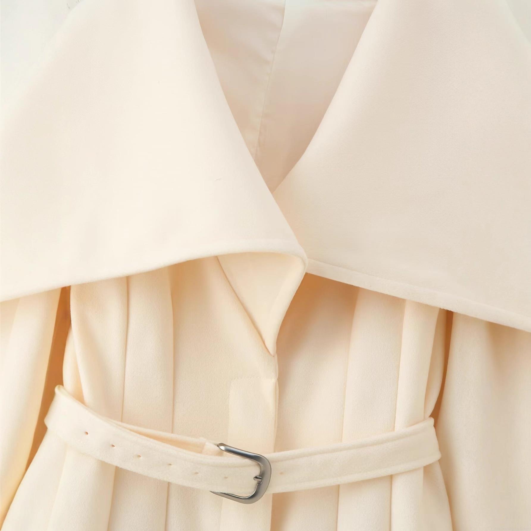 Solid Color, Metal Buckle, Large Lapel, With Belt, Shawl Collar