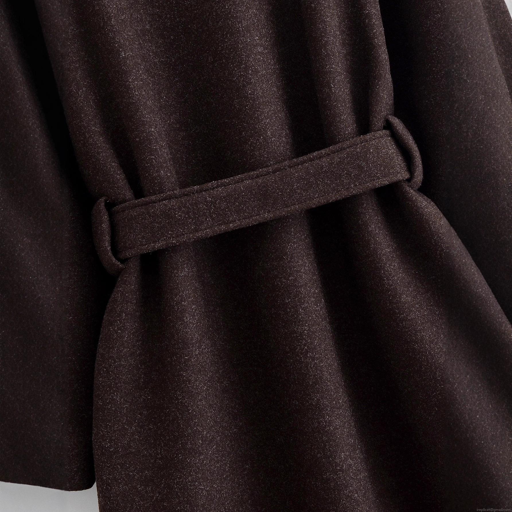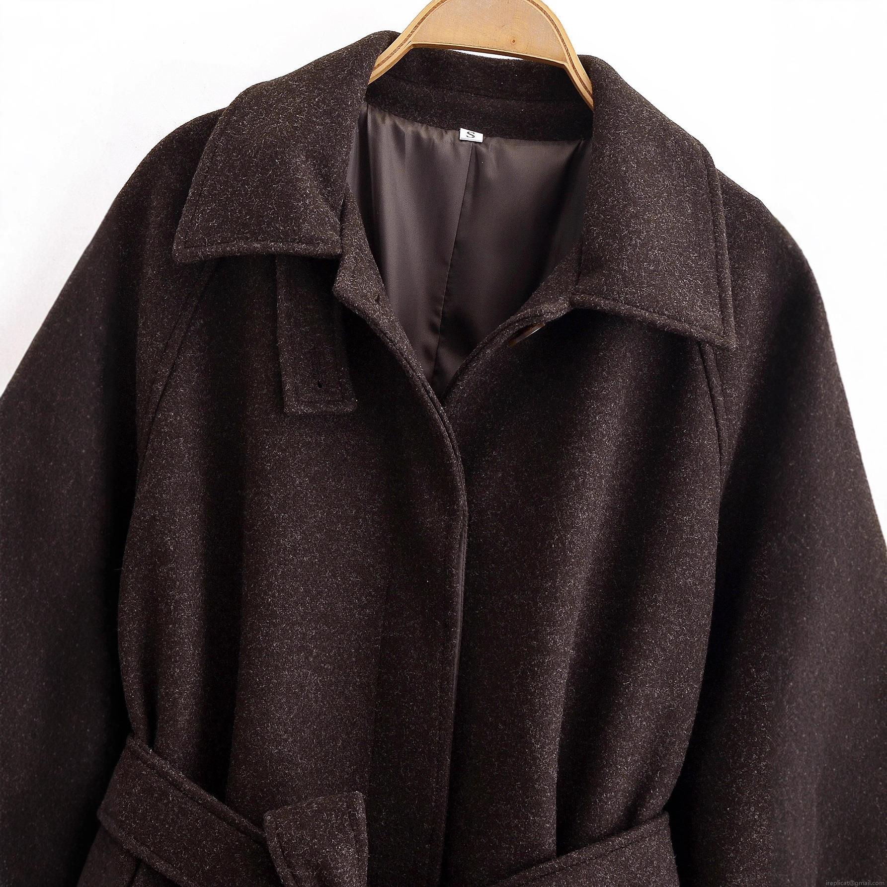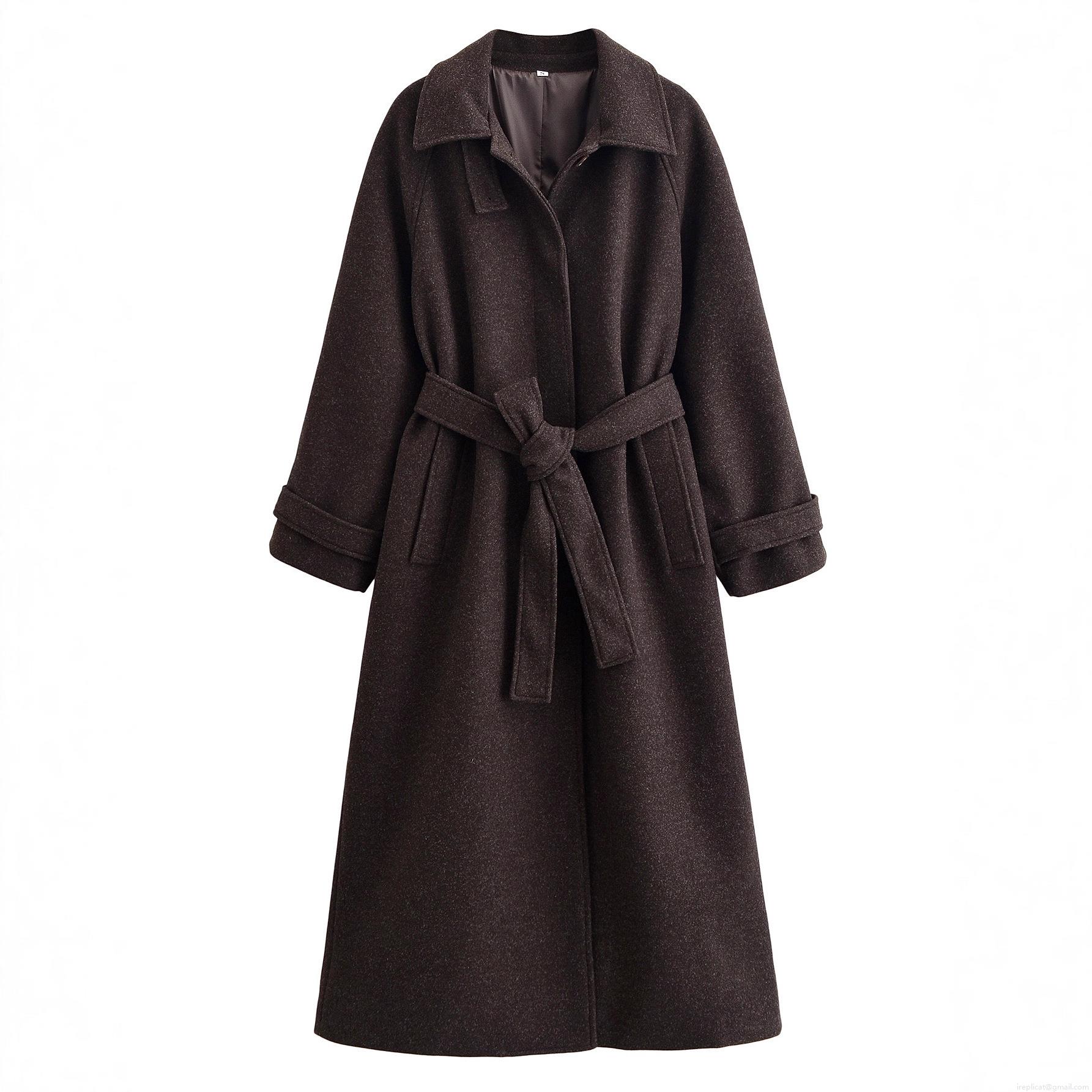• Women's Elegant Long Woolen Look Overcoat With Belt Autumn Winter Solid Color Lapel Single Breasted Polyester Coat For Ladies Streetwear Fashion