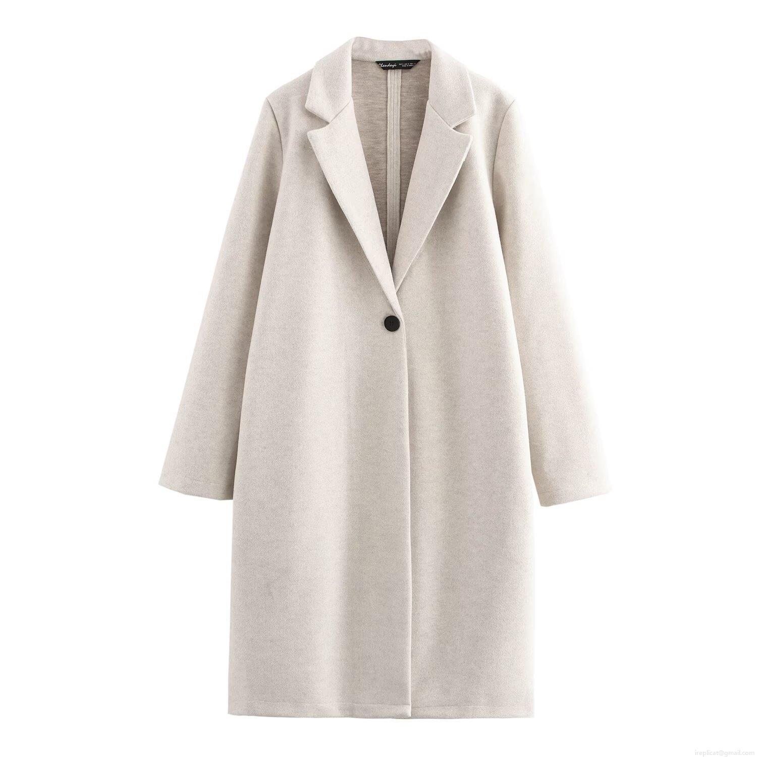 • Women's Elegant Mid-length Woolen Style Coat Polyester Lapel Single Button Outerwear For Autumn Winter Casual Fashion Solid Color Ladies Trench Coat