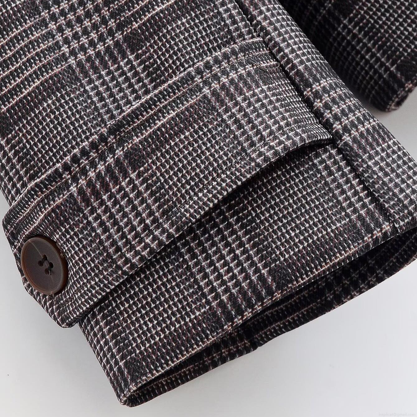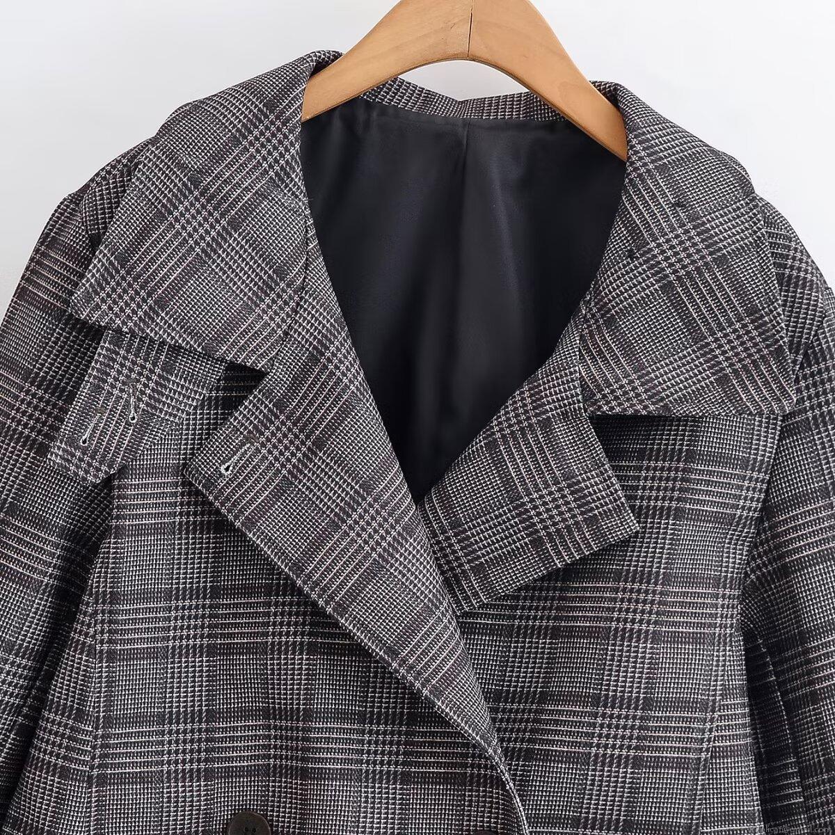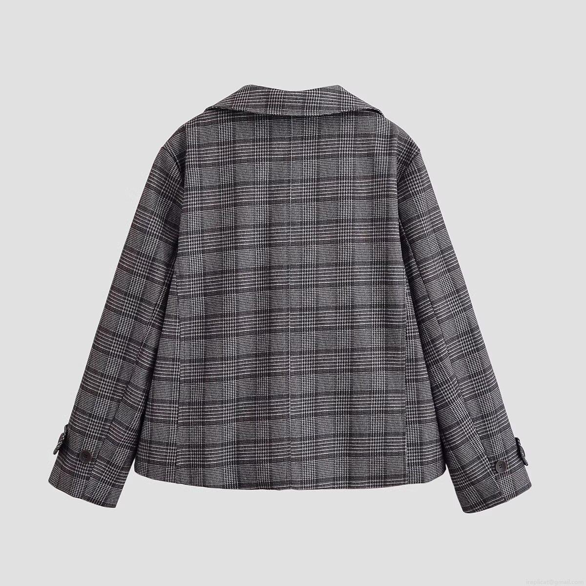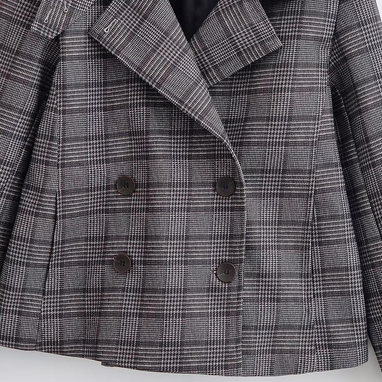 • Women's Elegant Plaid Double Breasted Jacket 100% Polyester Long Sleeve Lapel Short Coat Retro British Style Outerwear For Office Daily Wear