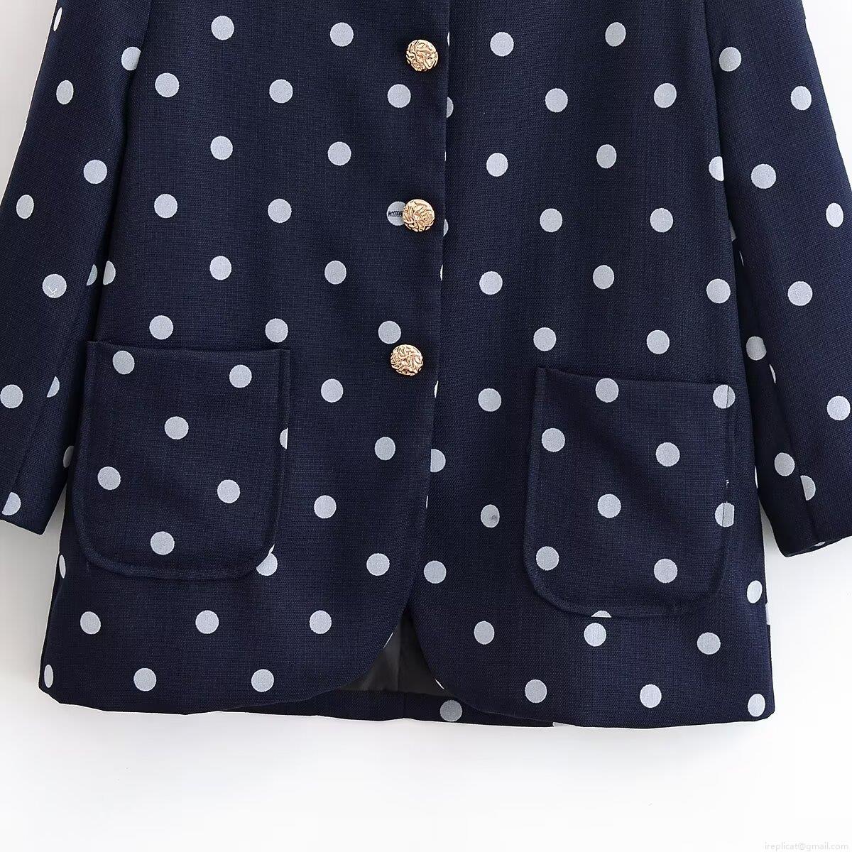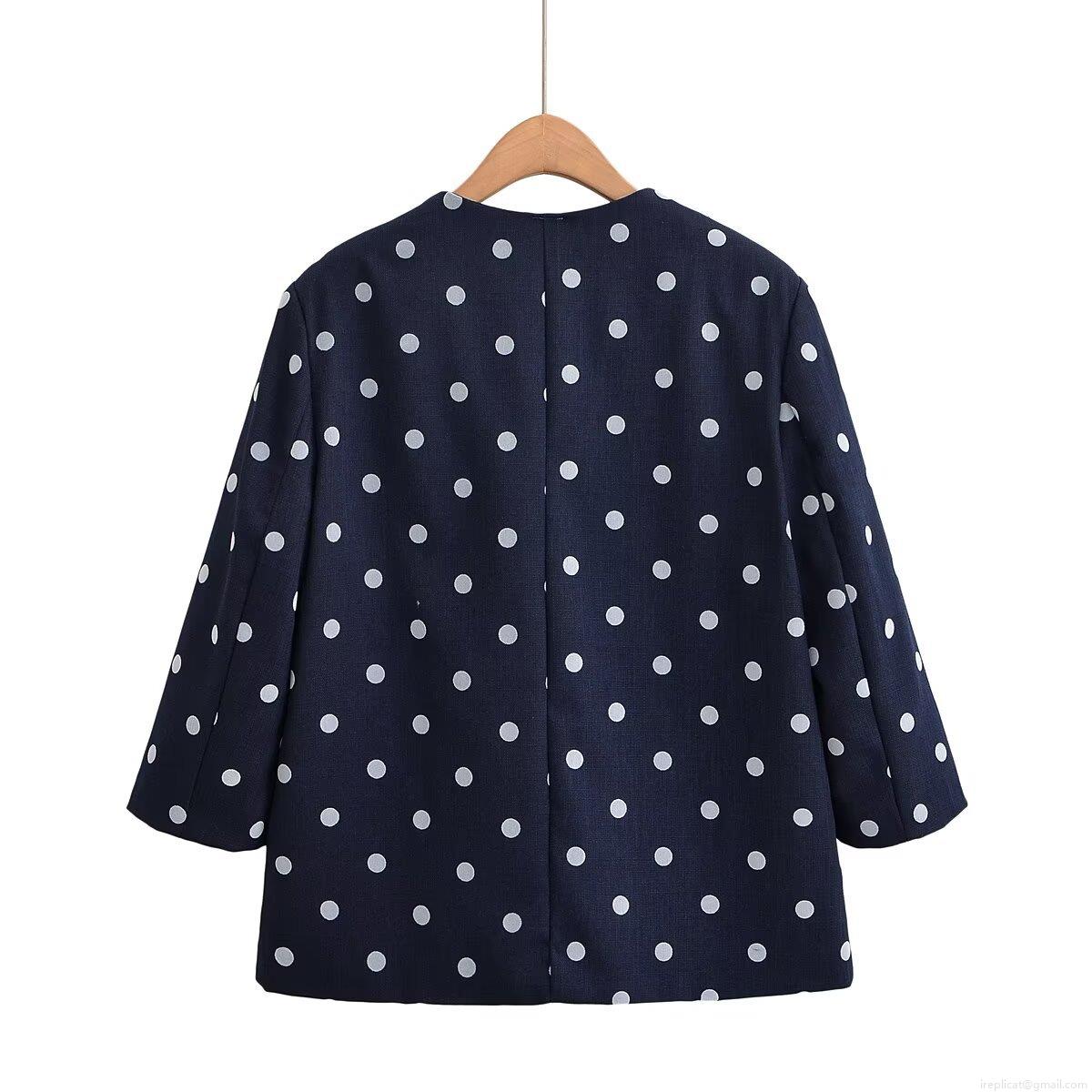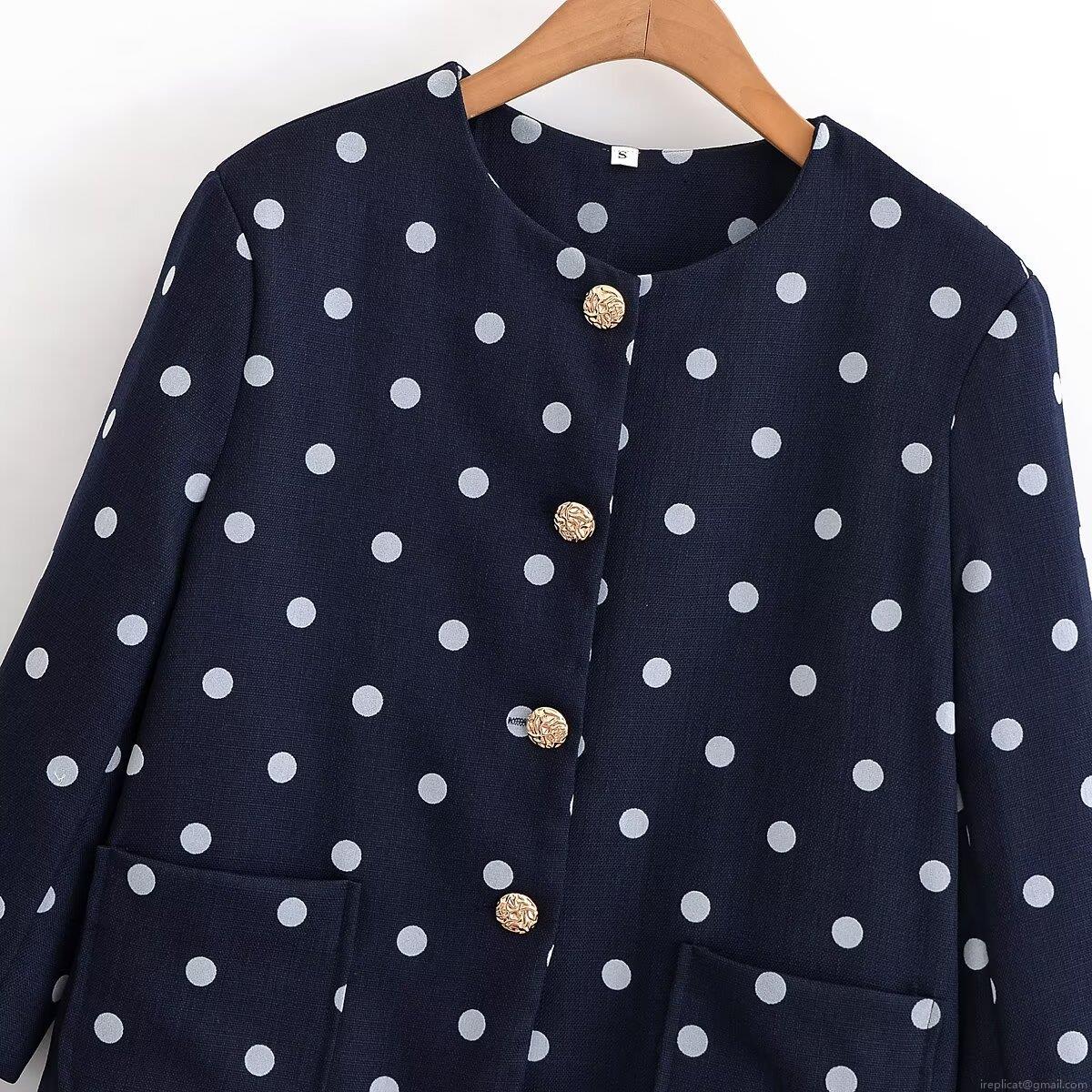 Polka Dots, Crew Neck, Big Pocket, Gold Retro Buckle, Contrasting Color Polka Dots