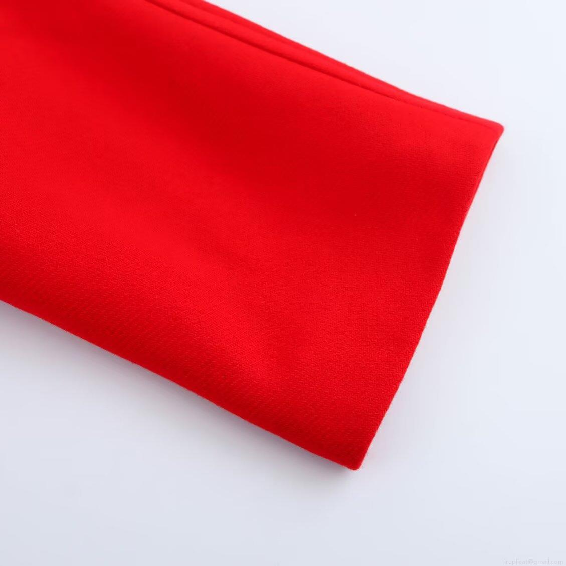 • Women's Elegant Red Long Woolen Blended Coat Round Neck Loose Fit Midi Jacket With Pockets Single Button Warm Winter Outerwear For Ladies